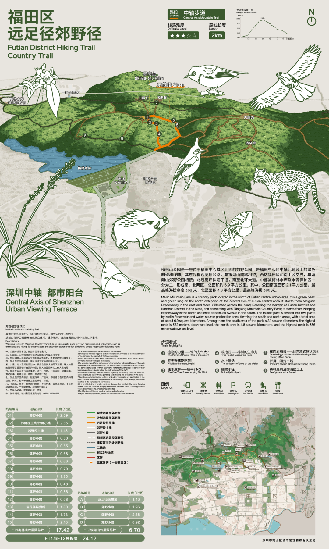 深圳灣公園、福田紅樹林生態公園、深圳人才公園、大沙河生態長廊。