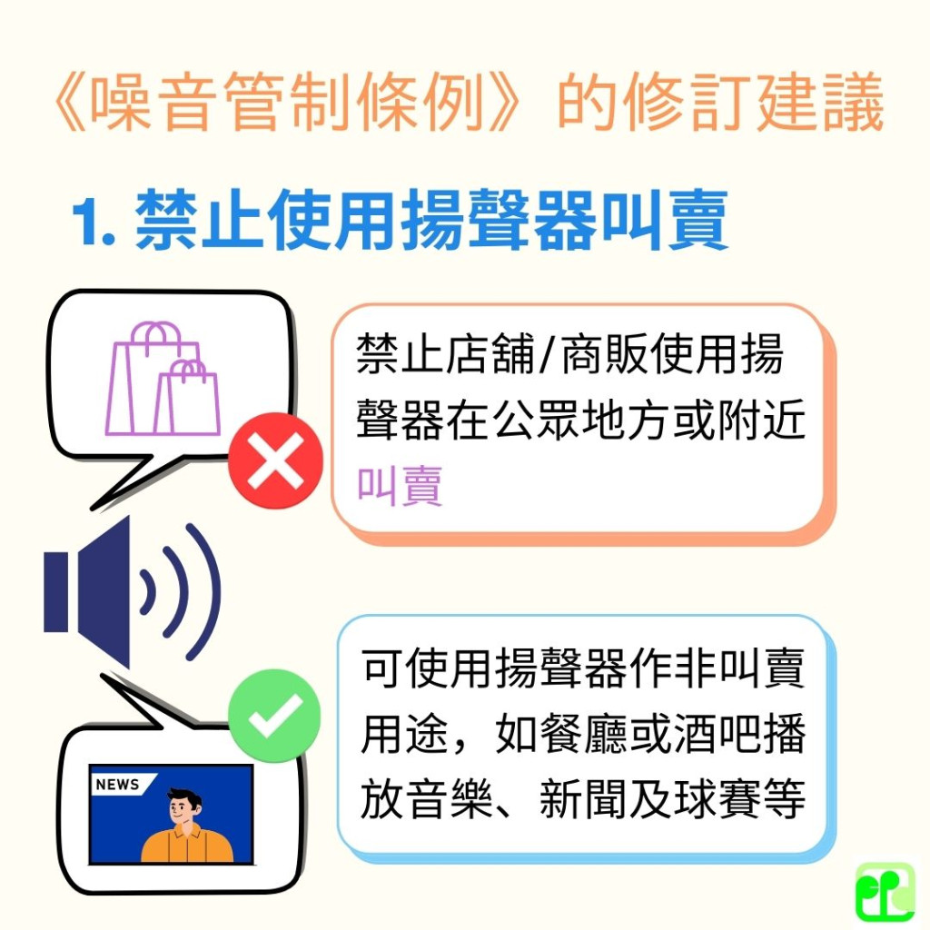 環保署就修訂現有《噪音管制條例》進行為期2個月的公眾諮詢,建議禁止在公眾地方或附近範圍使用揚聲器叫賣,並設立1萬元定額罰款機制。環保署評估及噪音組首席環境保護主任李志坤今日(10日)在一個電台節目解釋,建議設立定額罰款機制,是由於近年有店舖使用揚聲器重複播放預製聲帶叫賣,造成嚴重噪音問題,即使署方用盡條例賦予的權力檢控,部分商戶仍然屢勸不改,因此有需要加強檢控。