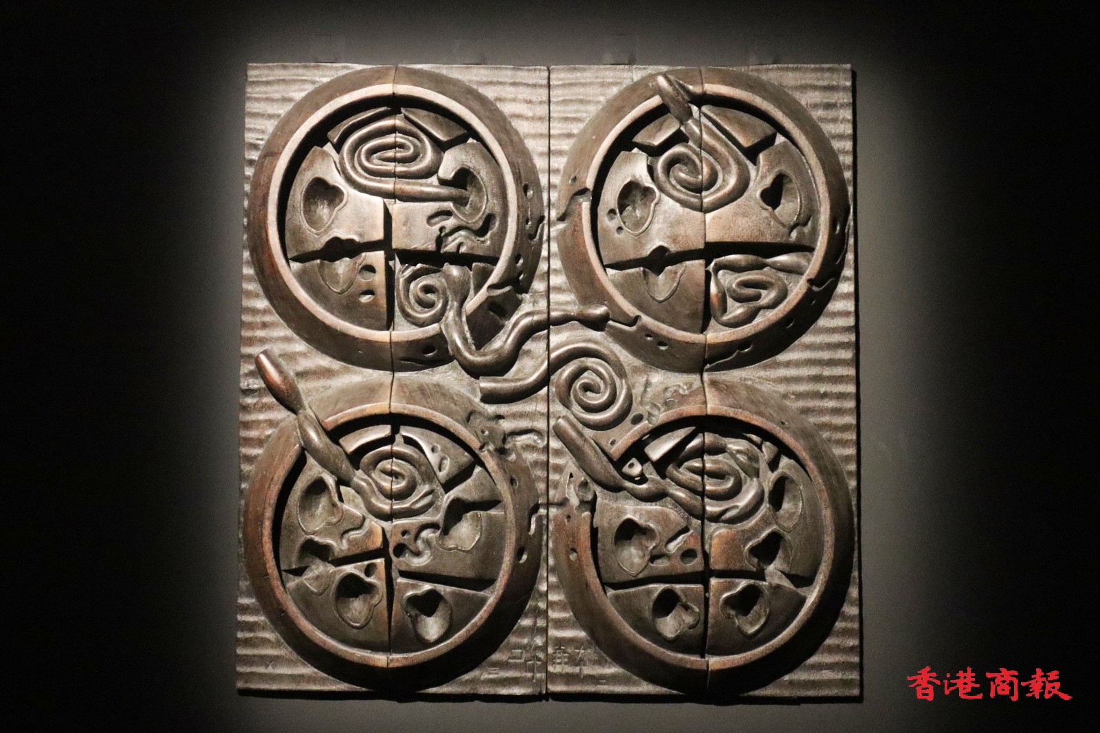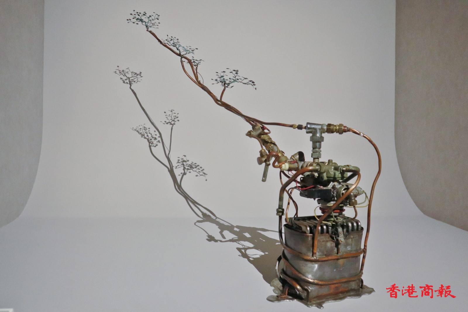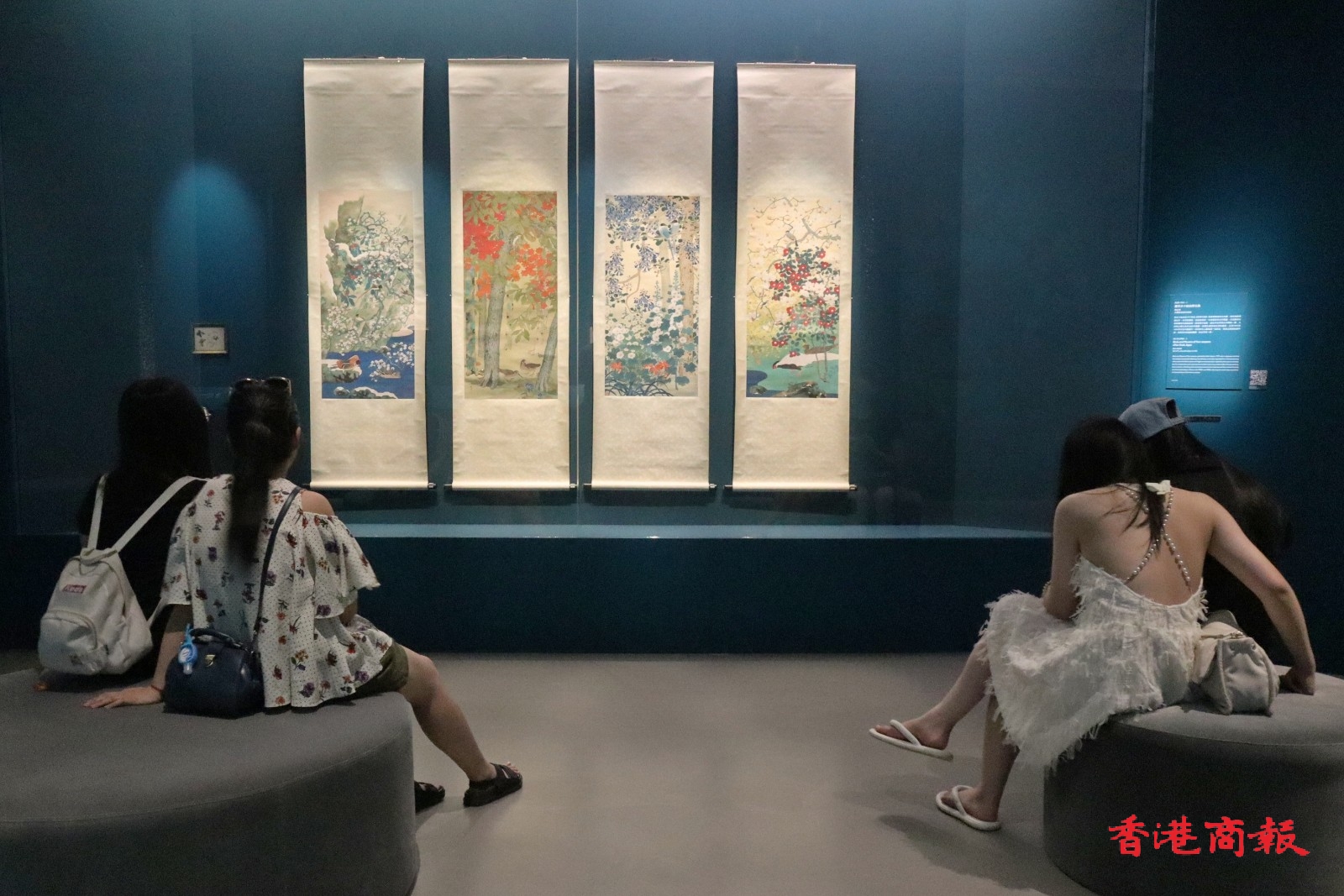 藝術館同時邀請2名香港藝術家阮家儀和李寶怡,以藝術館藏品為靈感創作全新場域特定藝術裝置。阮家儀以現成物製作成可轉動的《登陸何處》,配合燈光投射,在牆身上交疊出一抹夢幻景致,構成她對香港多元文化的體會。剪紙藝術家李寶怡經常往返香港與洛杉磯,她的作品《鳥語·花香》以人手剪出一個層層漣漪的大池塘,並以擴增實境建構一個鳥語花香的世界,以現代美學守護及發揚中國傳統工藝,作品亦反映她在異鄉對故土的尋根之情。(記者 馮瀚文攝)