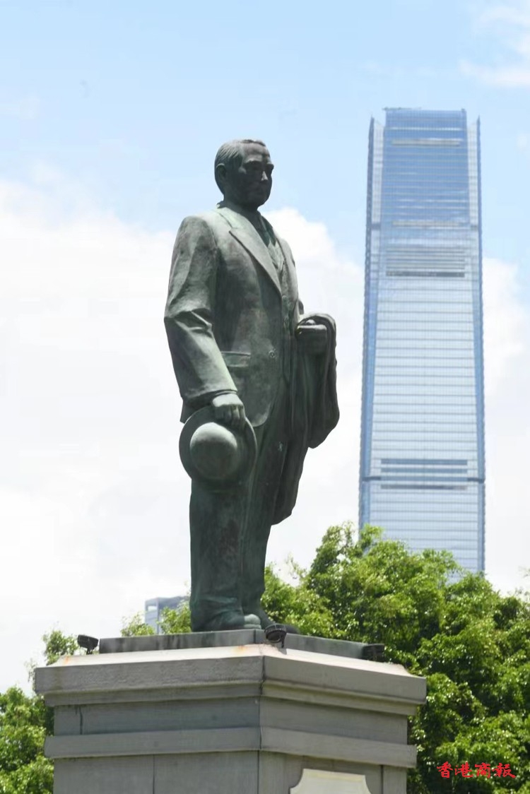 在西區中山紀念公園的圓形草坪正中央,豎立著一尊孫中山銅像。該銅像高4.5米,是以孫中山於晚年時代,踏足香港土地的造型為設計。富歷史感的銅像,與後面中山紀念公園的現代化建築,形成了強烈對比。