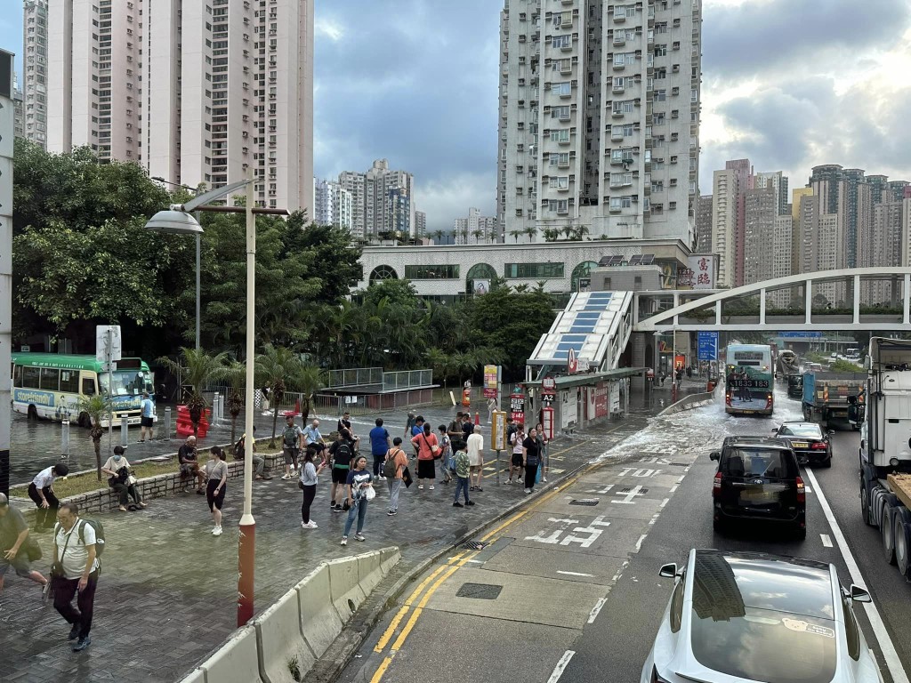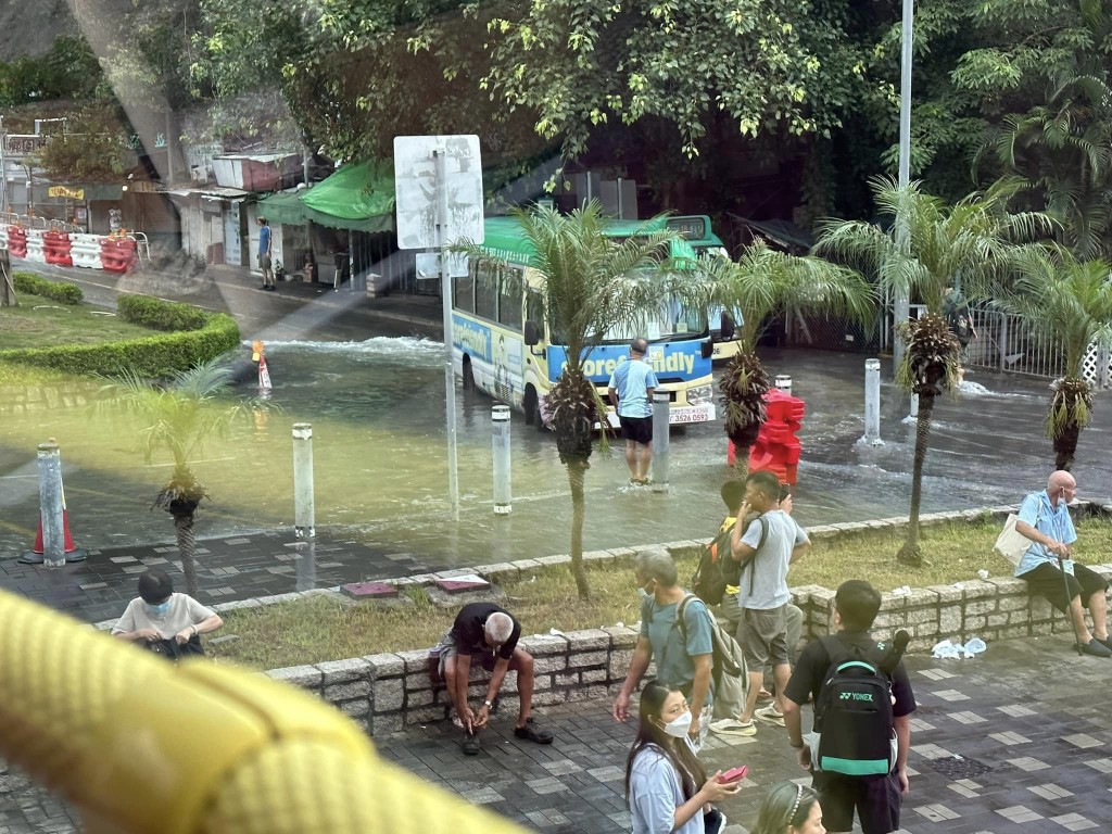 從網上圖片可見,附近的行車路及行人路變成澤國,洪水淹浸至龍翔道,市民要涉水而行,車輛也要慢行。維修工人其後到場關上水掣,進行緊急維修。