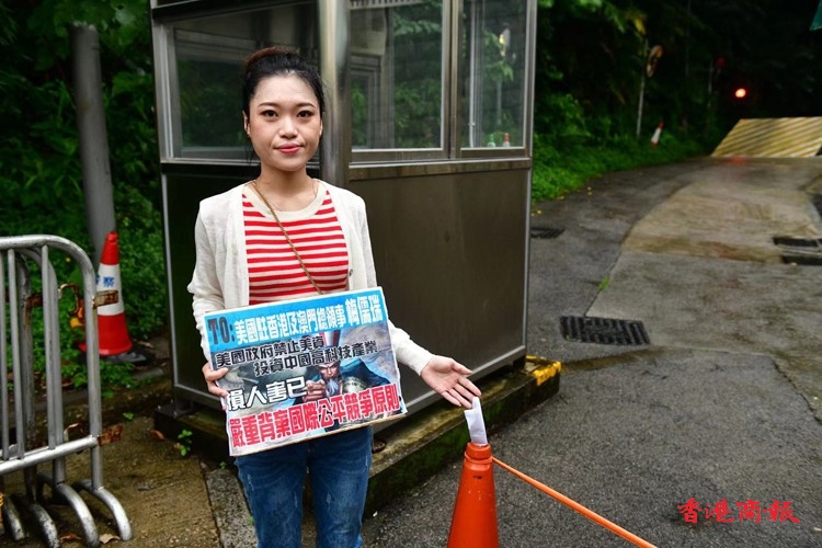 有市民今早(18日)到美國駐港澳總領事館請願。眾人認為美國簽署的行政命令嚴重破壞公平競爭原則,損人害己。