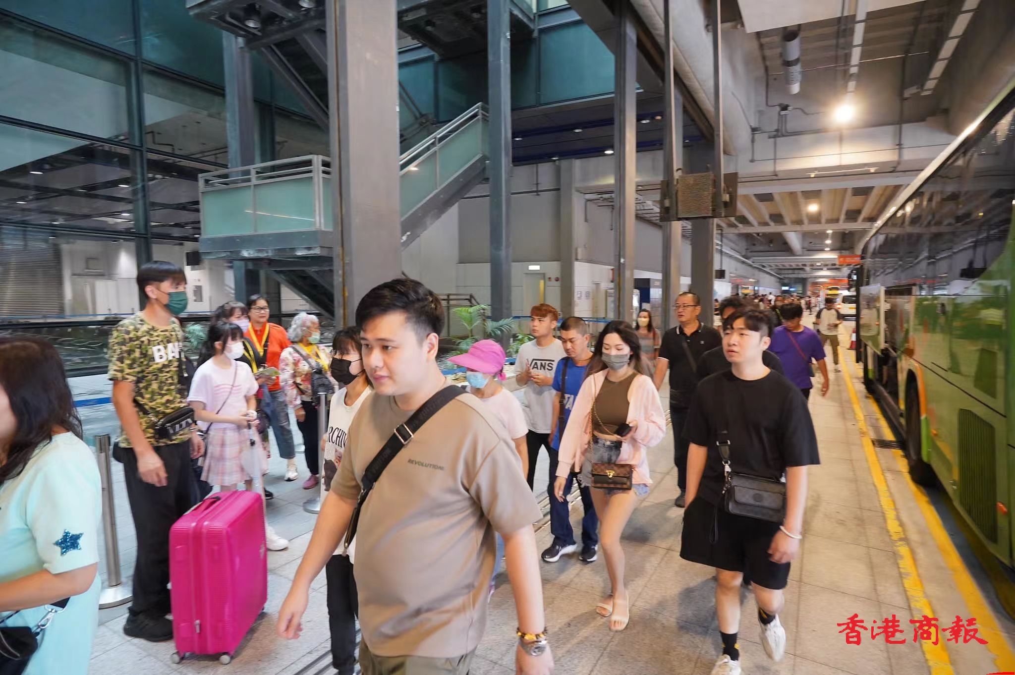 在啟德郵輪碼頭,今午已有職員在現場做準備,包括貼出交通資訊的告示,指示旅客乘搭不同公共交通工具的地點,碼頭內設有電視屏幕,顯示特別路線巴士及穿梭巴士的資訊;現場有多輛旅遊巴、巴士、小巴及的士等候旅客,職員在場向旅客提供資訊,並做好分流。下午3時30分左右開始,旅客陸續到達碼頭,郵輪上較多乘客是香港市民,不過亦有其他地區的遊客,來自中國台灣地區的劉小姐表示,今次是第一次到香港旅遊,對香港印象不錯,認為郵輪碼頭的安排方便。得悉郵輪碼頭有市集後表示會到該處遊覽。