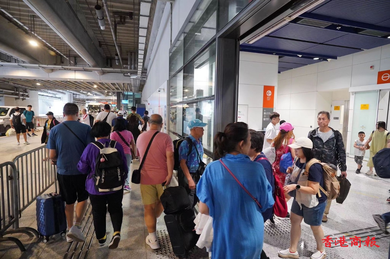 遊客劉小姐(右)認為郵輪碼頭的安排方便。記者 馮俊文攝