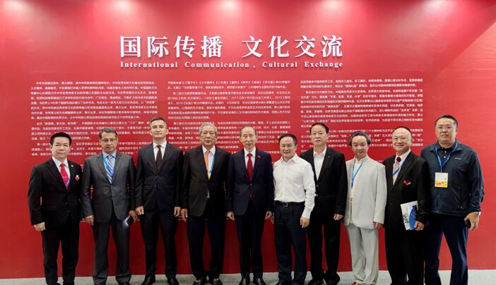 8月18日,首屆「新國潮·新文創·新消費」文化展覽會在深圳隆重開幕。中國國際文化傳播中心執行主席、「新國潮」文展會理事會主席龍宇翔,泰國前副總理、泰中文化促進委員會主席披尼·紮·頌巴,烏茲別克斯坦駐上海總領事阿紮姆焦恩·馬恩蘇洛夫出席並致辭。
