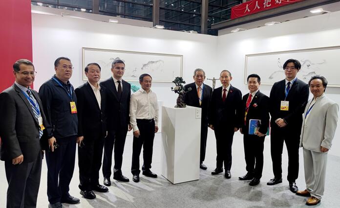 泰國前副總理、泰中文化促進委員會主席披尼·紮·頌巴在致辭中表示,隨着經濟、科技高速發展,人們的精神需求與日俱增,面對瞬息萬變的世界,傳統文化顯得彌足珍貴。首屆「新國潮」文展會的舉行,不僅是中國優秀傳統文化的集中展示,更是向世界推廣傳統文化的窗口。無論是「中國製造」,還是「中國智造」,都令世界矚目。他期待,本屆展會的作品未來也能在泰國展出。