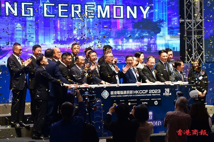 一眾主禮嘉賓如孫東、許健生、中聯辦青年工作部副部長宋來、香港電腦商會創會會長張耀成、香港電腦商會上任主席王志強、科技創新界立法會議員邱達根、紡織及製衣界立法會議員陳祖恒、選舉委員會界別立法會議員黃錦輝、政府資訊科技總監黃志光、海關助理關長(情報及調查)胡偉軍、知識產權署助理署長(版權)許麗珊、大會指定電子支付服務供應商瑞柏科技控股有限公司CEO及總經理楊達榮、電競活動合作夥伴Cyber Games Arena聯合創辦人周啟康、香港電腦商會副主席洪英峰、梁定球與楊子鐵、香港電腦商會會董余華強、招秀茵和陳偉航等主禮嘉賓進行拉桿儀式,象徵「香港電腦通訊節2023」正式開幕。