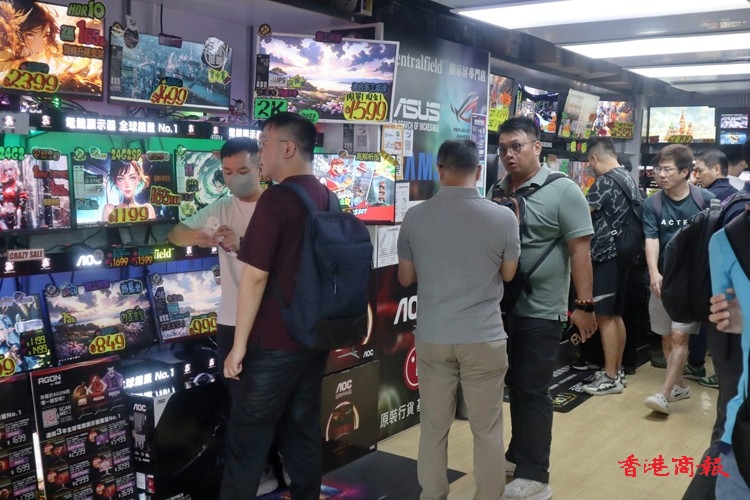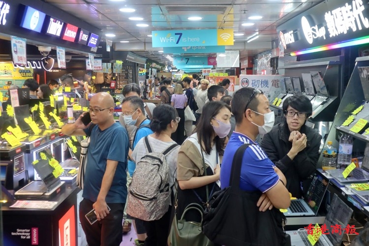 香港電腦業總會舉辦黃金高登電腦嘉年華2023,入夜後大批市民到黃金電腦商場選購心儀產品。