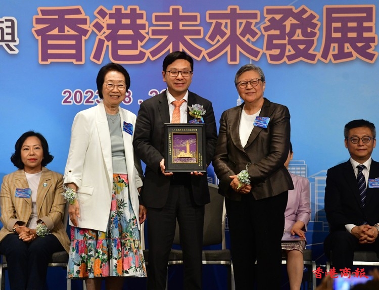 陳婉嫻和香港好聯盟榮譽顧問范徐麗泰向論壇主禮嘉賓暨主講嘉賓:勞工及福利局局長孫玉菡致送感謝狀。