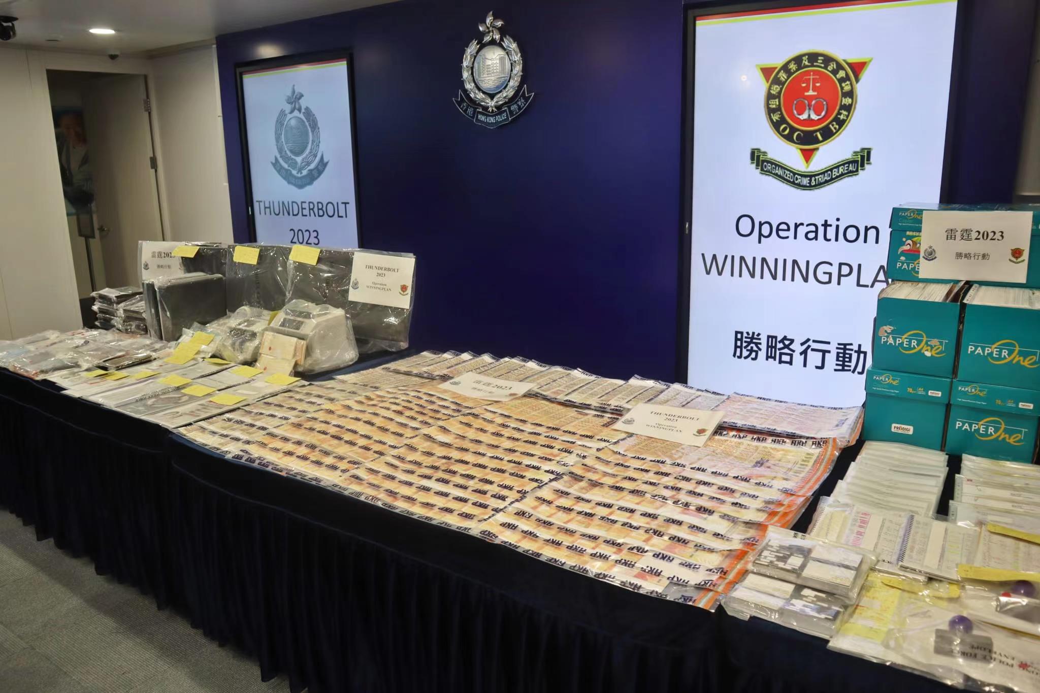 警方配合粵港澳聯合反罪惡行動「雷鐘2023」,有組織罪案及三合會調查科(O記)本月24日至26日在全港展開代號「勝略」反三合會行動,針對一個活躍本港的三合會團夥,打擊其收入來源。