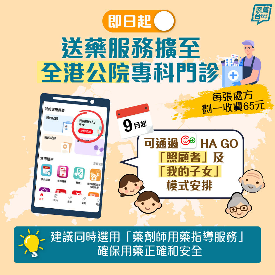 另外,9月起,送藥服務可通過醫管局手機應用程式HA Go的「照顧者」及「我的子女」模式安排,方便照顧者和家長代為安排。服務稍後會涵蓋出院病人、急症室病人及免診取藥病人。(圖為資料圖)