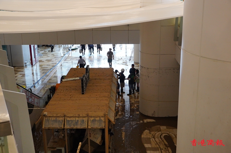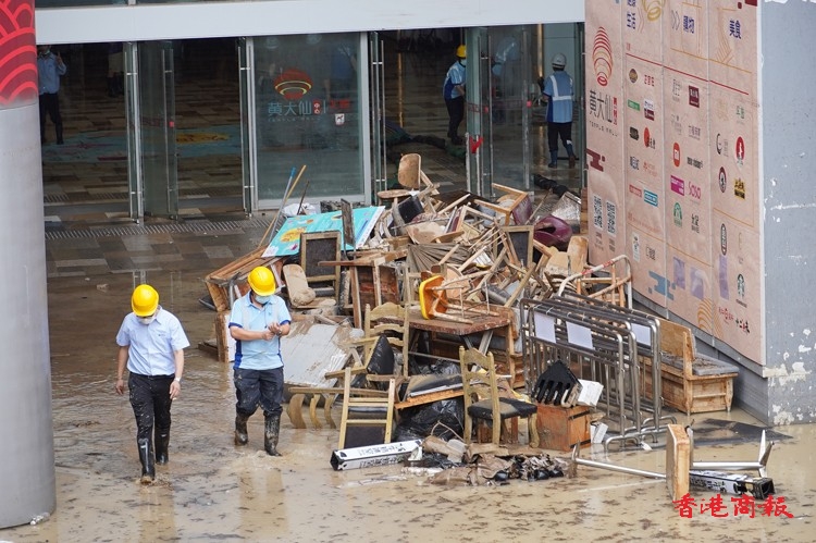 本港遭逢百年一遇的大暴雨,黃大仙成水浸重災區之一。極端情況結束後,本報記者今午(9日)視察黃大仙港鐵站及黃大仙中心北館恢復情況,見到積水已基本退去,但是地面仍滿布淤泥。