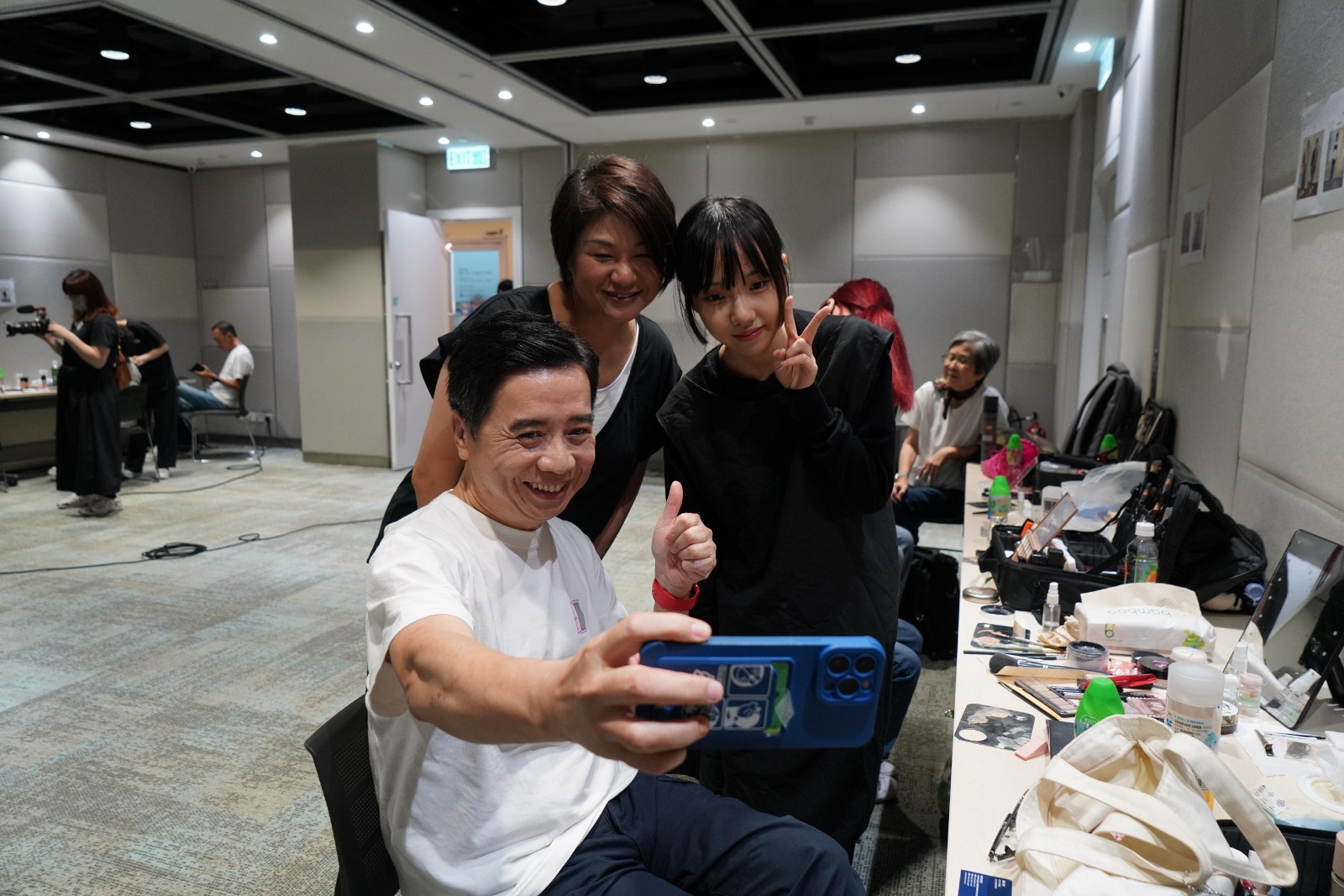 青年學院職專文憑(專業美容)學生負責為銀髮族模特兒提供專業舞台化妝,更在後台和他們打成一片。