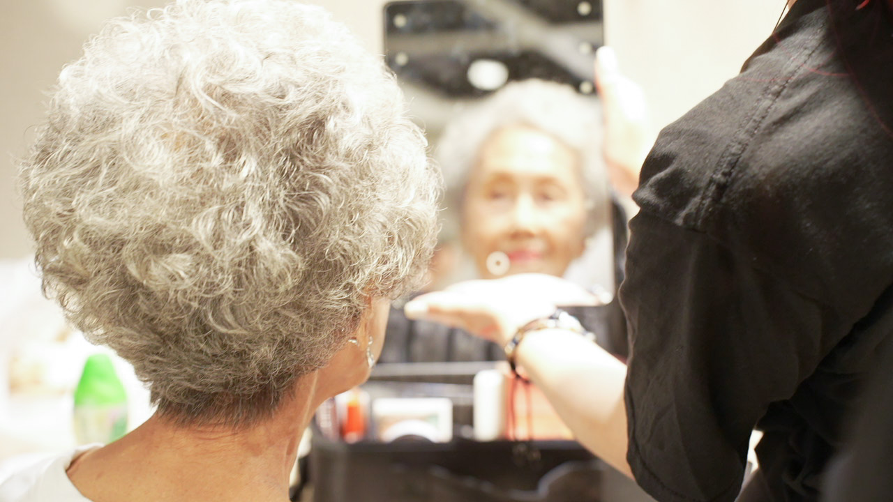 頂圖:職業訓練局機構成員青年學院與救世軍合作,為多位來自救世軍耆才拓展計劃觀塘中心的銀髮族進行形象設計,銀髮族搖身一變成時裝模特兒,在中環街市走上表演天橋,綻放活力與姿采。