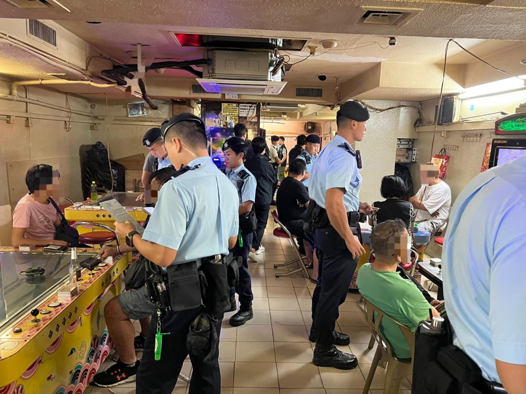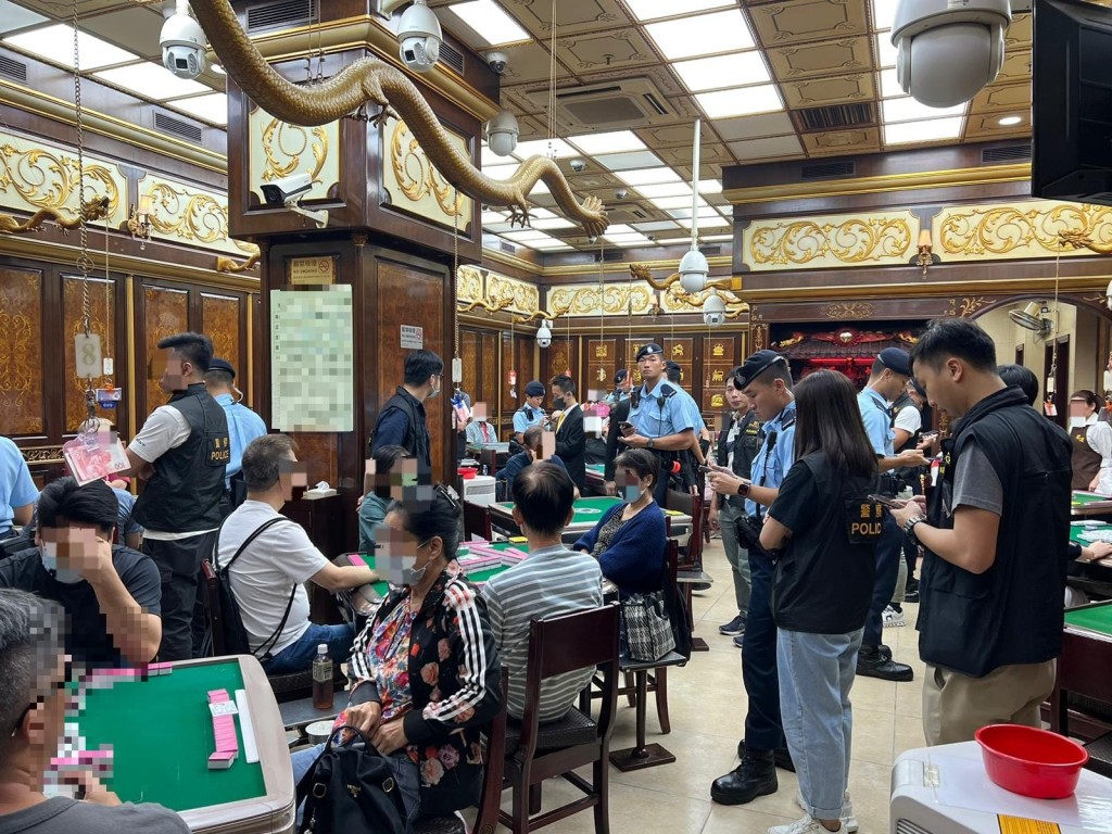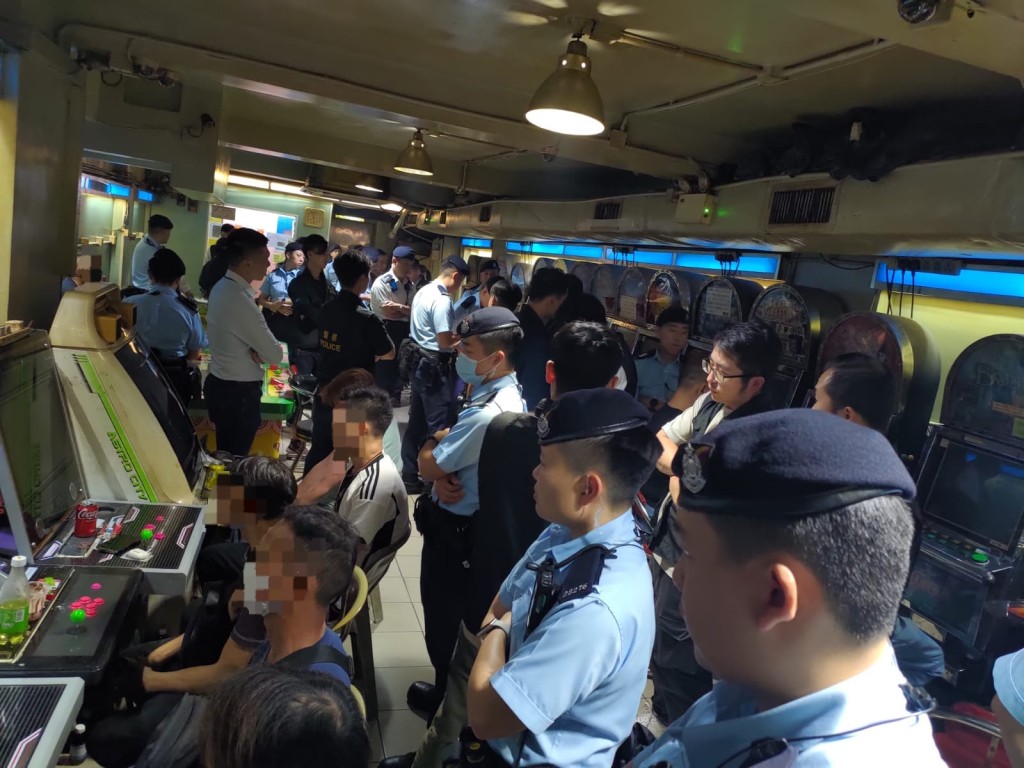 行動中,警員檢獲一把牛肉刀、一把手鋸、12部釣魚機、22張麻雀枱、約50萬元現金、面值約180萬元的籌碼及少量懷疑毒品。行動目前仍在進行中,不排除有更多人被捕。