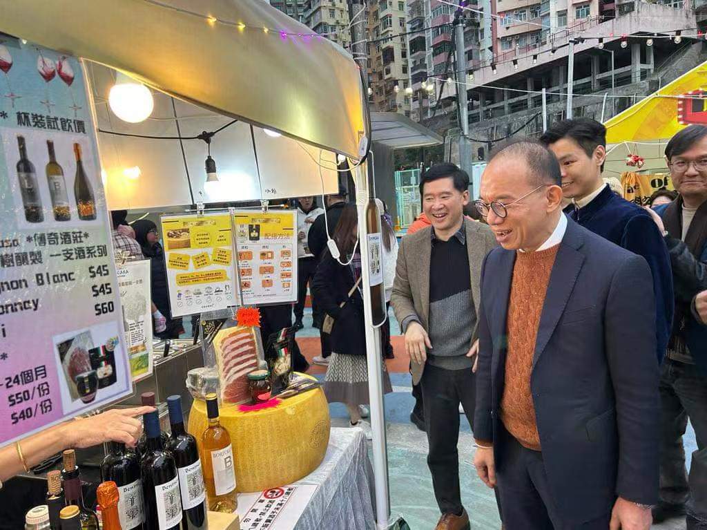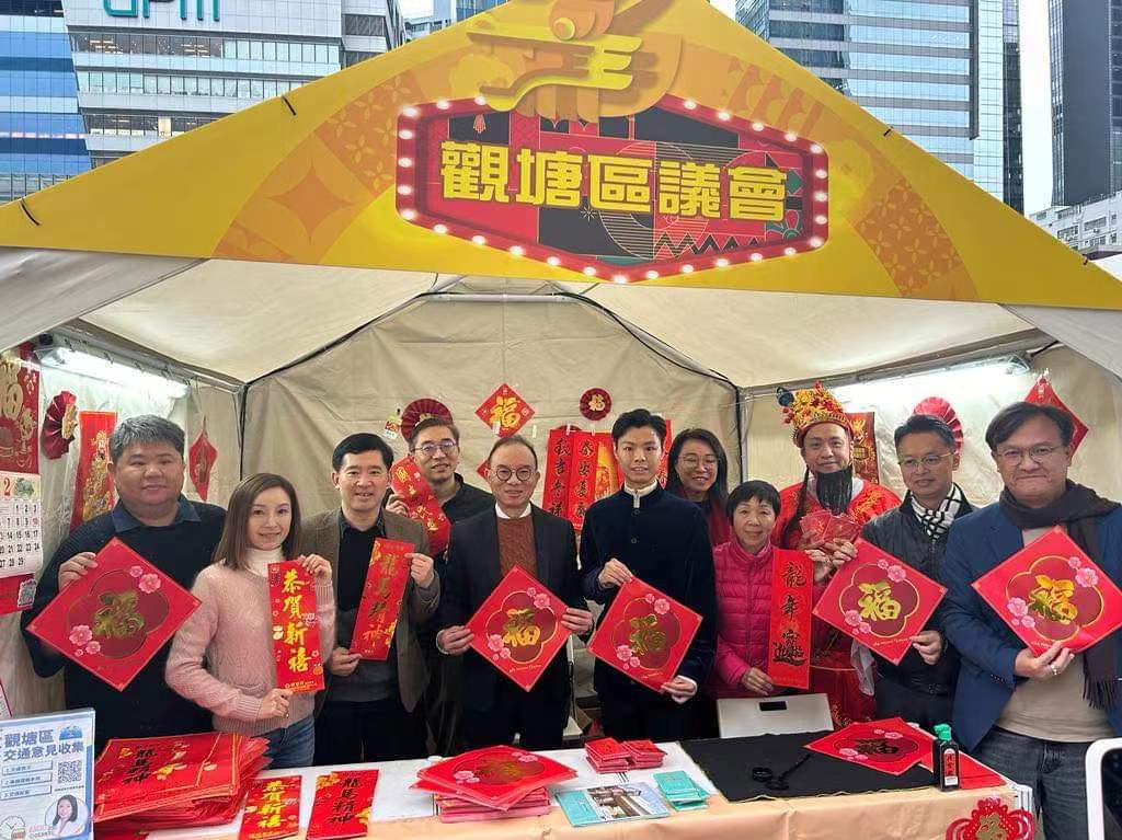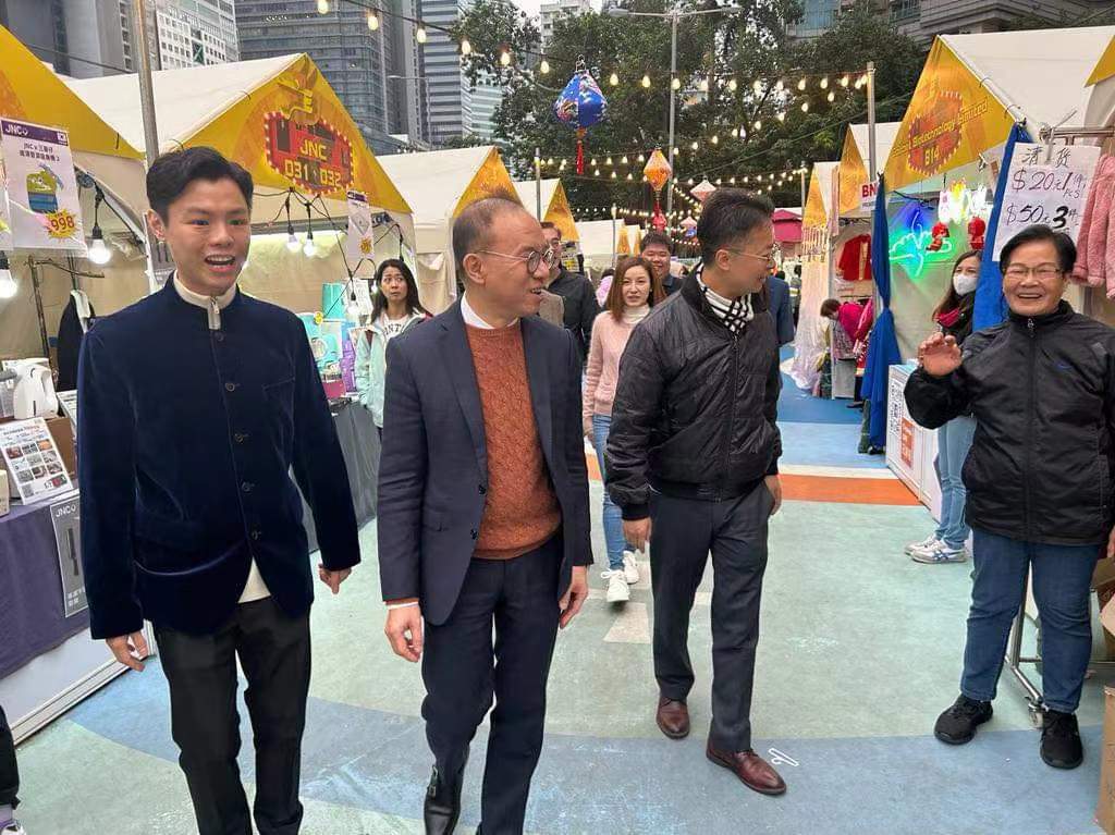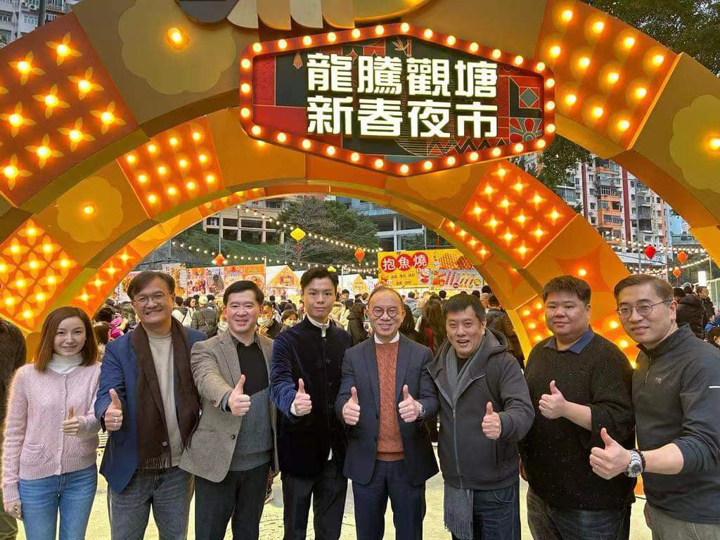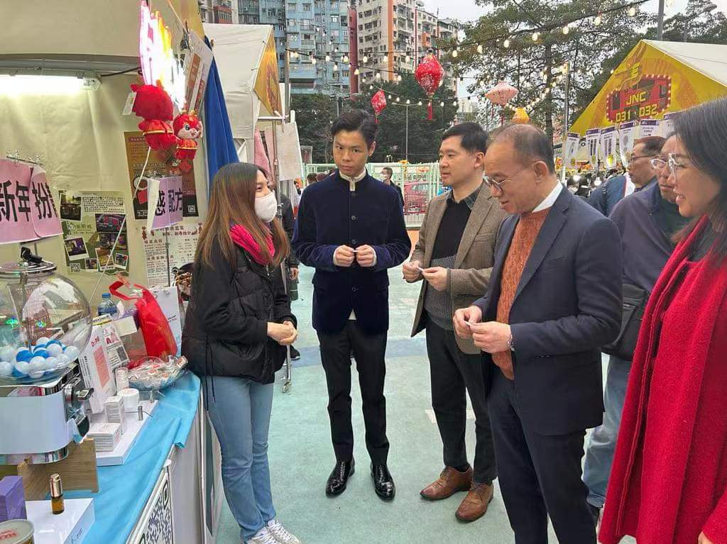 多名觀塘區區議員陪同曾局長和胡副局長到訪夜市多個攤位,他們祝賀檔主生意興隆,市民身體健康,人人心想事成,龍騰虎躍。