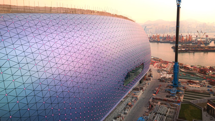 啟德體育園主場館外牆所有面板今天(19日)已完成安裝,此歷史性時刻標誌着啟德體育園工程已邁進另一個新里程,將雄偉的世界級建築,融入九龍東璀璨耀眼的維多利亞港海岸,從此改寫了香港極賦標誌性的天際景觀。