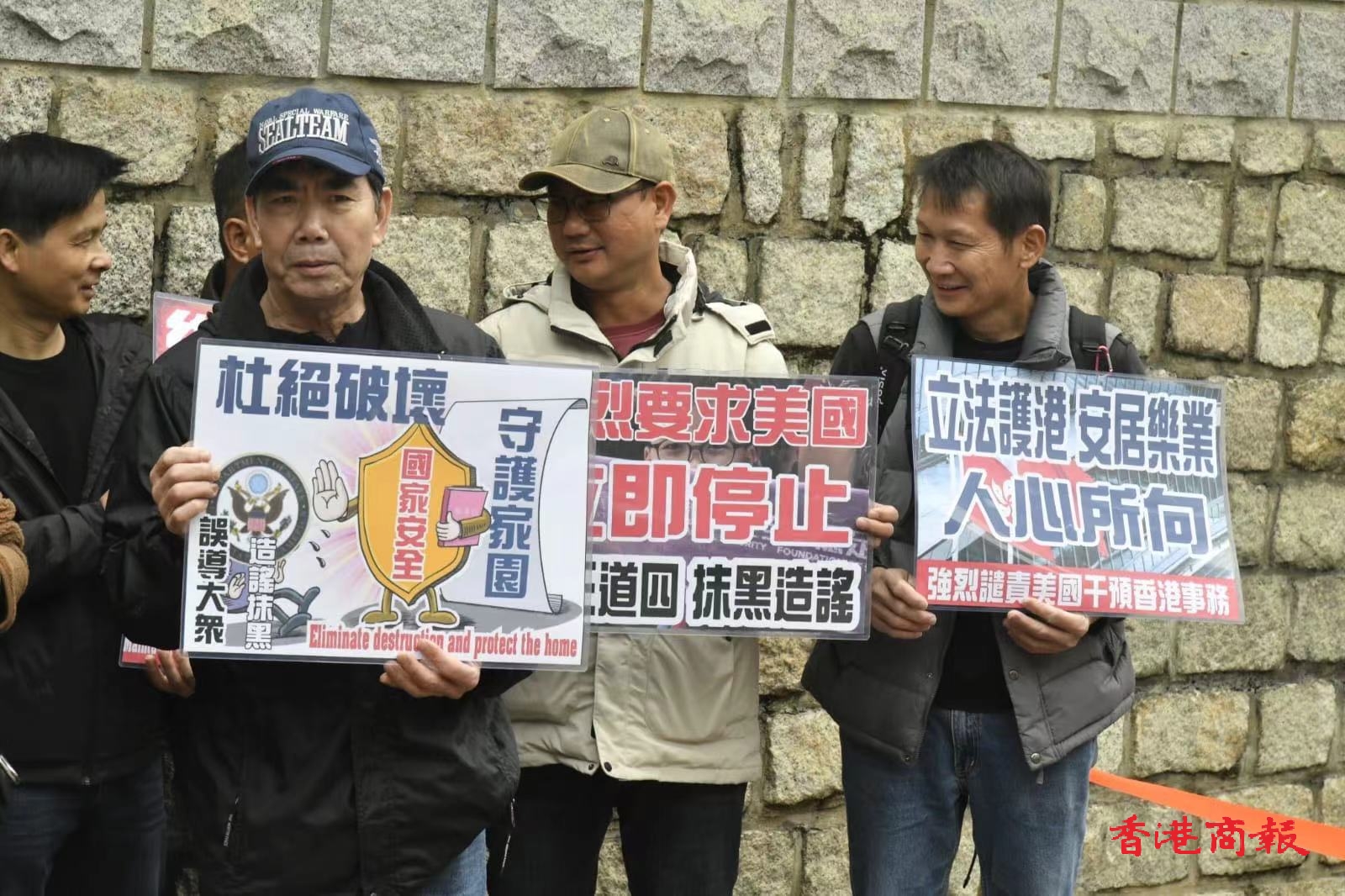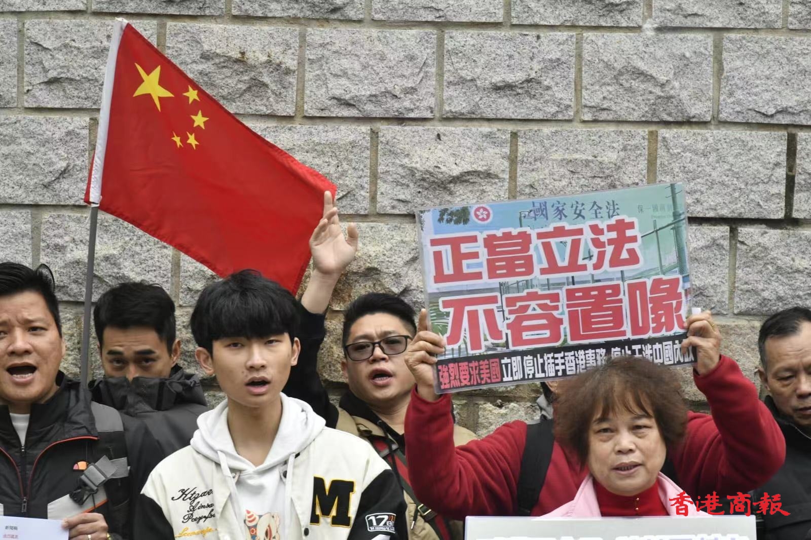 一眾普通香港市民今日(3日)自發到美國駐港澳總領事館請願,眾人高呼「強烈反對美國干擾香港事務,香港事務,內地內政,不容干預,維護國安,天經地義,美國造謠抹黑,卑鄙無恥,立法護港,安居樂業,人心所向,強烈要求美國停止造謠抹黑,停止說三道四,杜絕破壞,守護香港安居樂業。」口號。