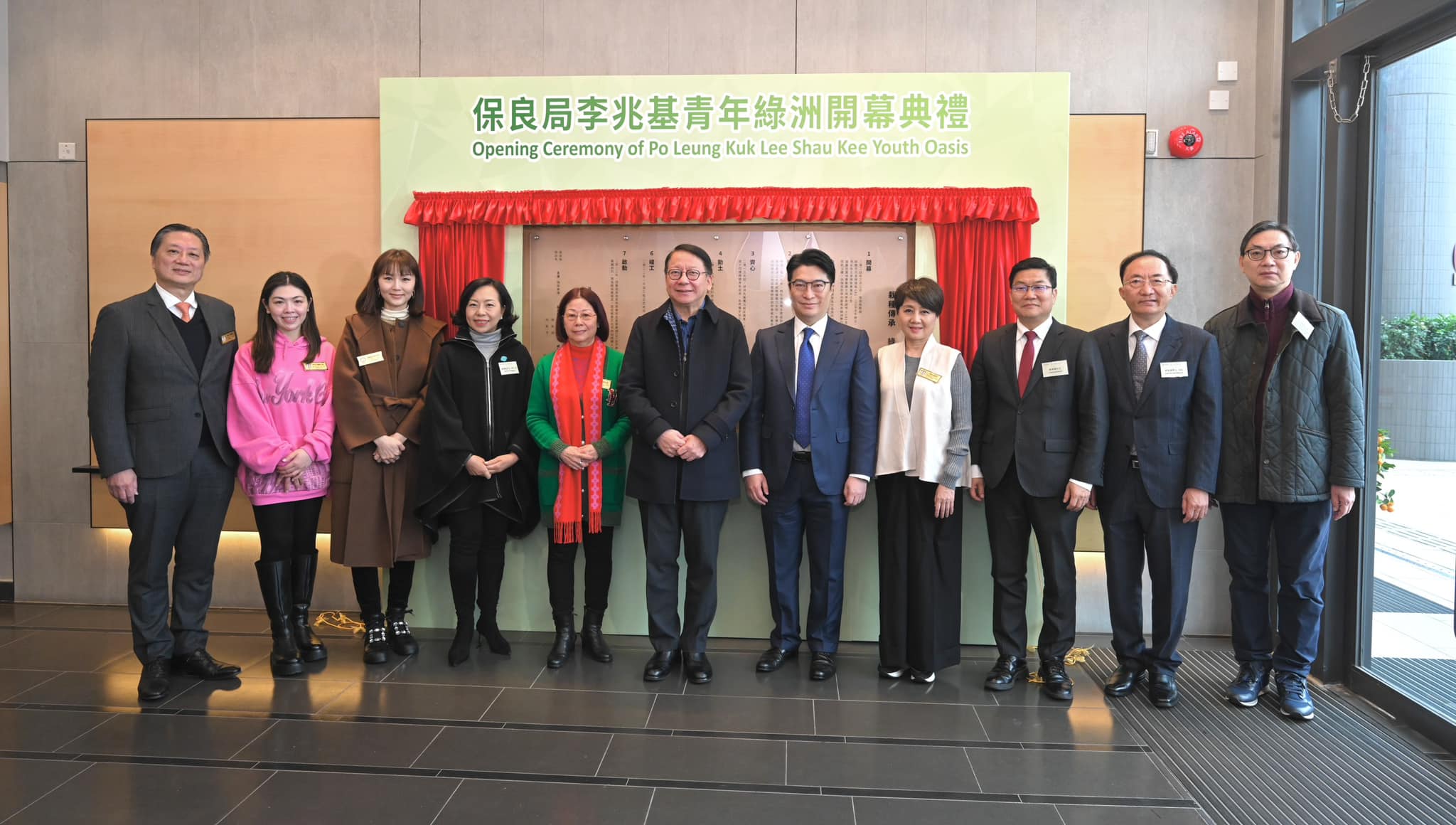 身兼青年發展委員會主席的政務司司長陳國基說,他今日聯同民政及青年事務局局長麥美娟出席「保良局李兆基青年綠洲」的開幕禮,見證「青年宿舍計劃」下第二個落成的青年宿舍。有關項目是由政、商、民三方合作,宿舍樓高27層 ,去年5月陸續入伙,提供最多1680個宿位,現時出租率約九成,反映項目深受歡迎 。