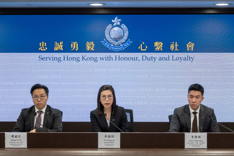 左起:毒品調查科行動組警司譚威信、毒品調查科總警司吳頴詩、毒品調查科高級督察李俊岷。