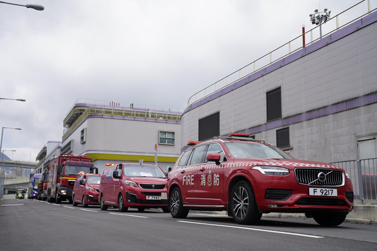 消防處車隊出發前赴江門參與演練。(政府新聞處)