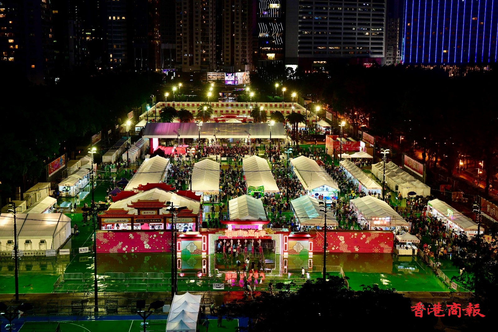 第二屆同鄉社團家鄉市集嘉年華入夜後燈火通明。崔俊良攝