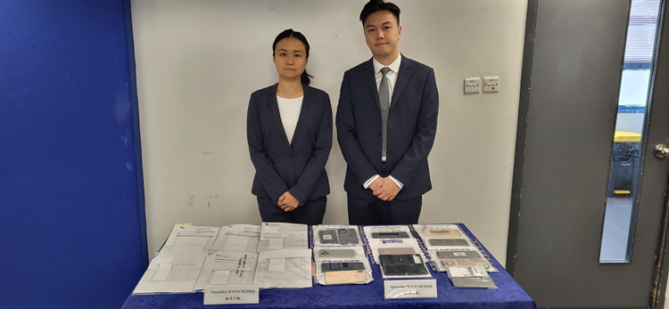 新界北總區科技及財富罪案組署理總督察盧震綱(右)、新界北總區防止罪案辦公室高級督察劉詠琳。