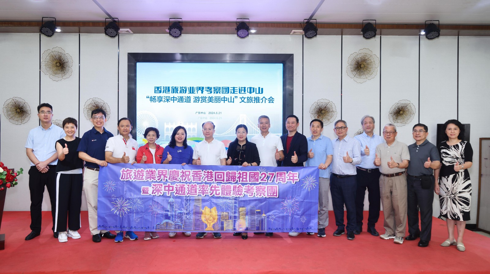 立法會議員姚柏良今日(21日)與多個旅行社、酒店及航空業界商會,聯合舉辦「慶祝香港回歸祖國27周年暨深中通道率先體驗考察團」,與近百名同業,率先體驗即將開通的深中通道。姚柏良中午出席中山市文化廣電旅遊局推介午餐會,與當地同業交流,藉此活動一瞥大灣區新發展,共慶香港回歸祖國27周年。