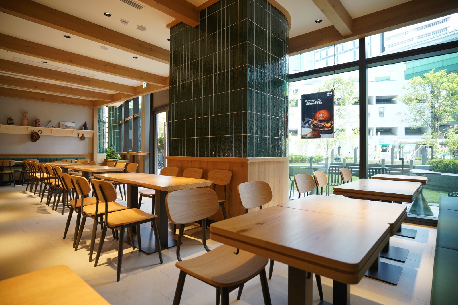 新店佔地約2000平方呎, 毗鄰多家餐飲品牌及時尚潮牌。店內以綠色磚牆為主,農場裝飾元素搭配綠色絨布座墊,氛圍清新自然。THE SOUTHSIDE屬於寵物友好商場,店舖設有室外用餐休憩區域,青翠的綠意庭園適合主人及寵物放鬆休息。