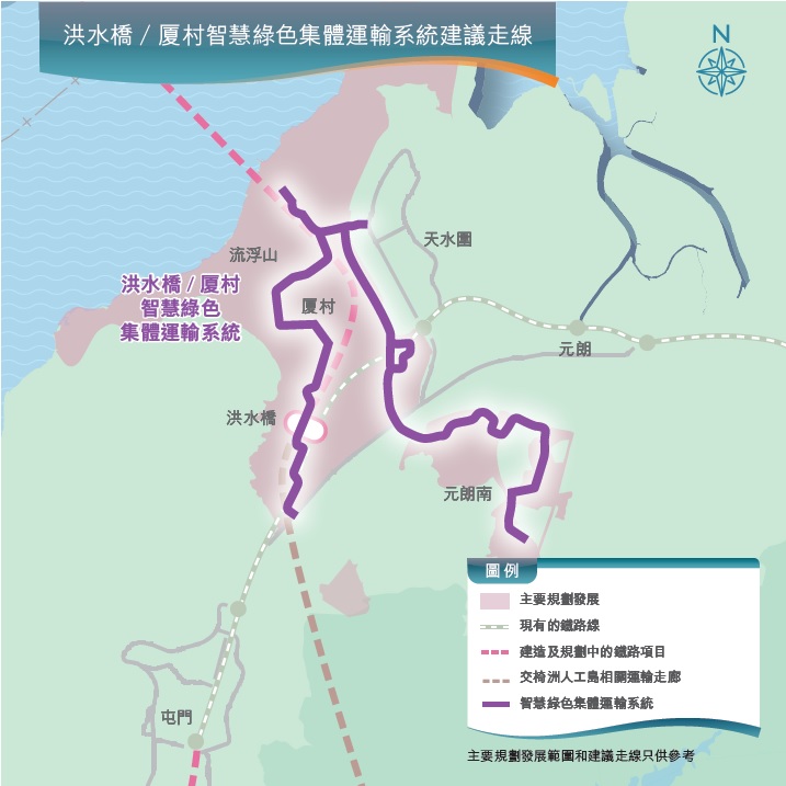洪水橋/厦村新發展區智慧綠色集體運輸系統構想圖。運輸及物流局網站