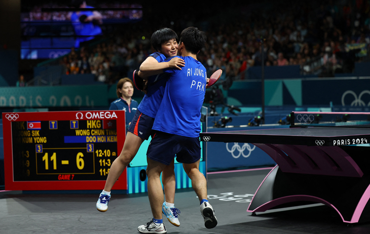 巴黎奧運今晚(29日)舉行乒乓球混雙4強賽事,港隊拍檔黃鎮廷/杜凱琹面對朝鮮拍檔李正植/金琴英,雙方激鬥7局,「黃杜配」最終以3比4僅負,未能打入決賽,將會轉戰銅牌戰。(香港周二晚上7時30分開賽)