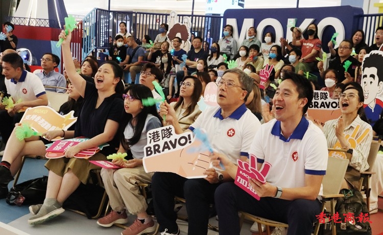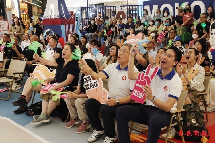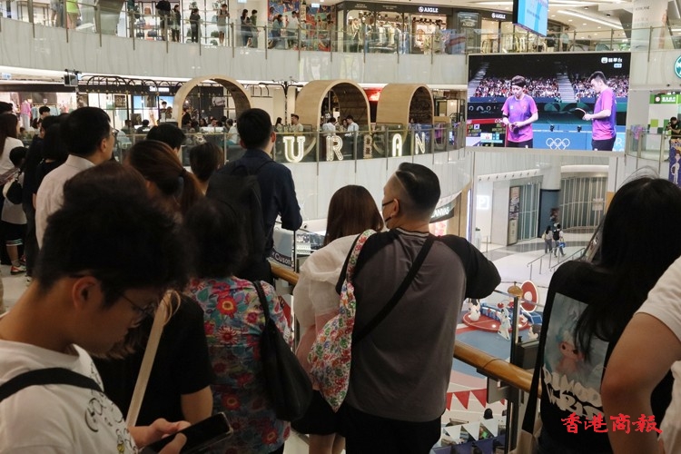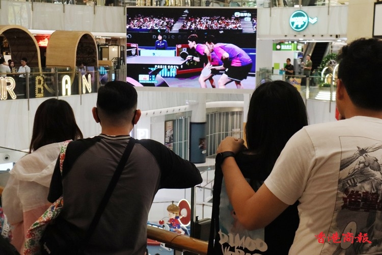 卓永興表示,今晚有不少市民去到商場觀看賽事直播,支持港乒和國乒,現場氣氛十分高漲。坐在他旁邊的小朋友一家和後面的幾位年輕女球迷很是投入,不時高呼「加油」,為香港隊和國家隊吶喊助威。