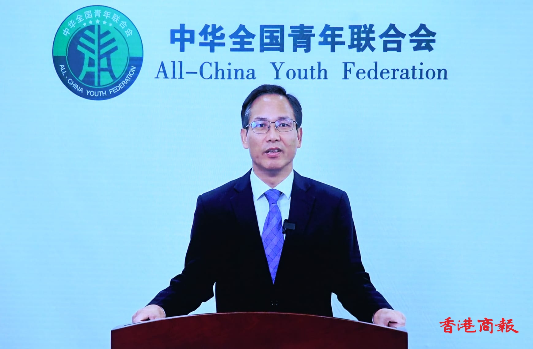 中華全國青年聯合會主席徐曉進行錄影演講。馮瀚文攝