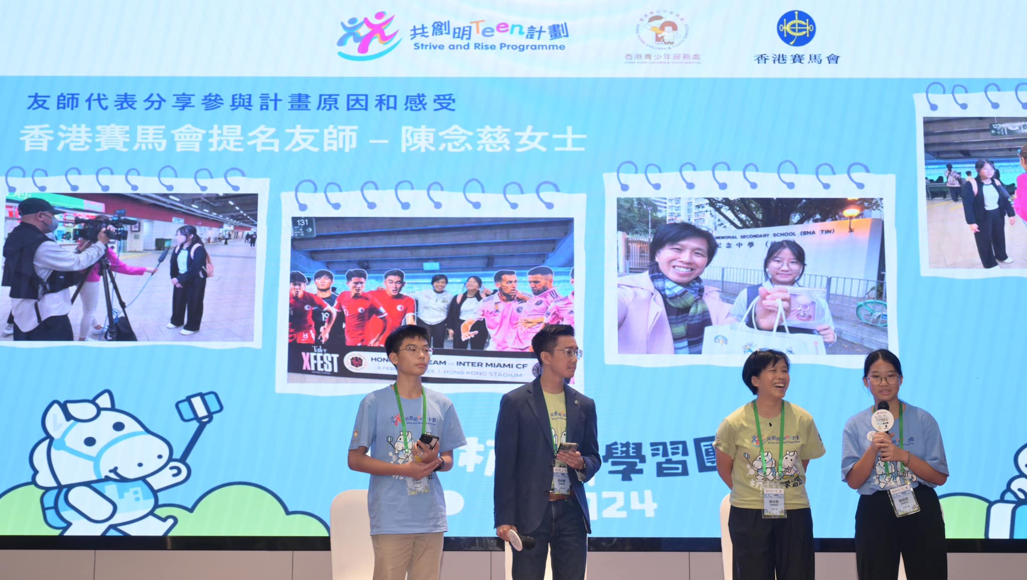 陳國基致辭時感謝香港賽馬會擔任「共創明『Teen』計劃」下合作夥伴委員會的副主席,一直以來對計劃作出貢獻和付出,包括撥款支持推行計劃、推薦員工成為學員友師,並為學員舉辦具有特色的團體活動,讓他們大開眼界、增長知識。