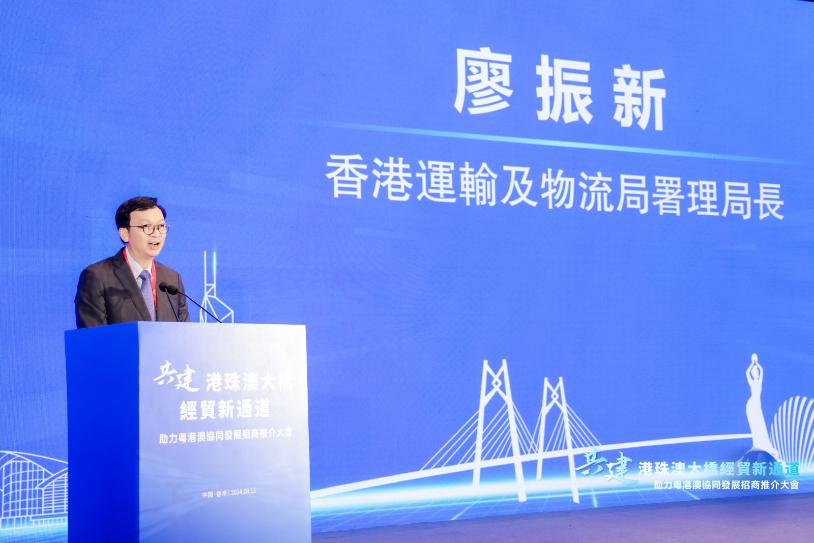 珠海市政府昨日在亞洲博覽館舉行「共建港珠澳大橋經貿新通道 助力粵港澳協同發展招商推介大會」,運輸及物流局副局長廖振新昨日以署理局長身份,出席支持招商大會。