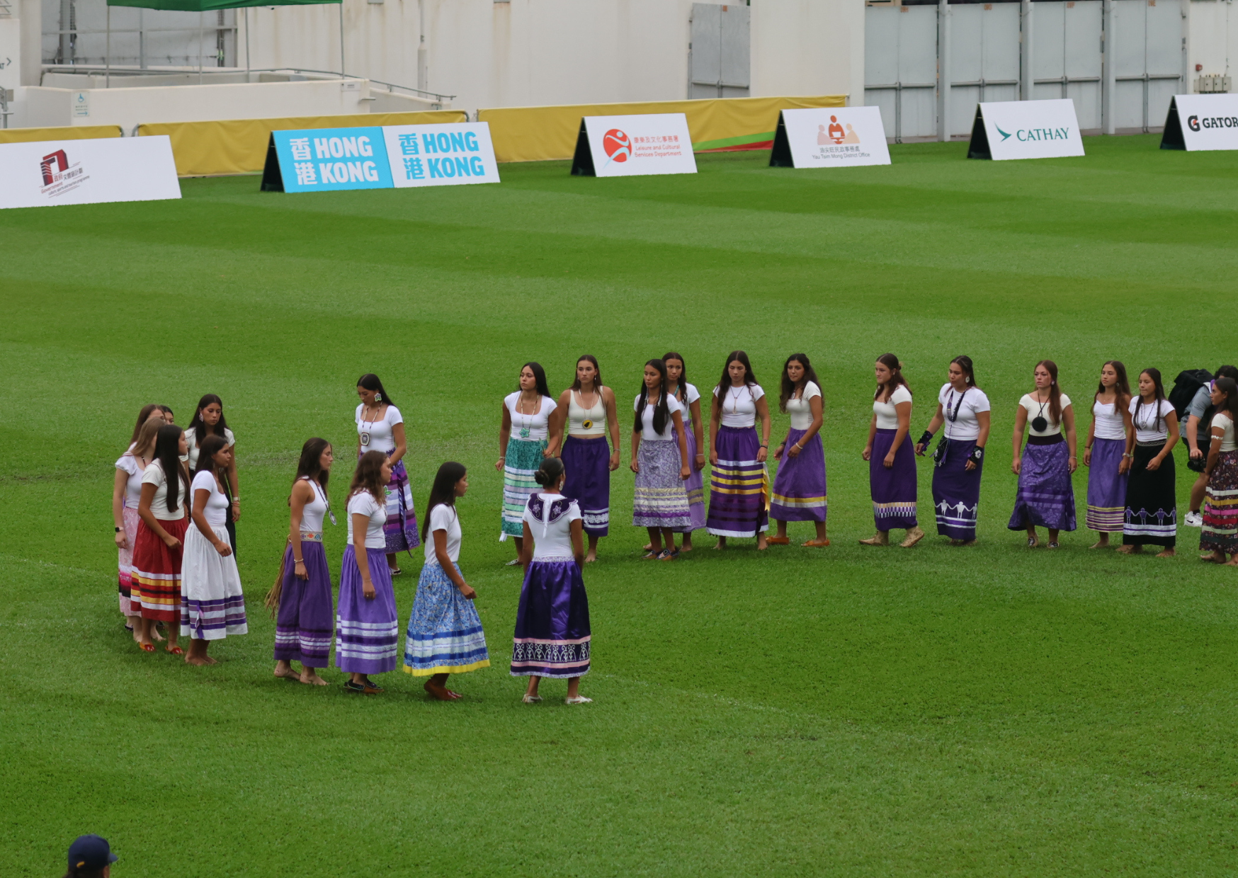運動員進場後,就由北美原住民上演傳統舞蹈,之後有香港傳統舞龍表演,讓現場觀眾感受精彩的中西文化薈萃。壓軸嘉賓就是人氣女團Lolly Talk前來助陣,現場獻唱3首歌曲,炒熱全場氣氛。開幕典禮後,隨即上演今次賽事的揭幕戰,由東道主中國香港迎戰牙買加。(文/圖/片:志誠)