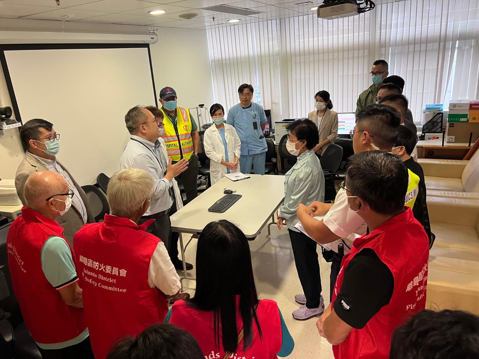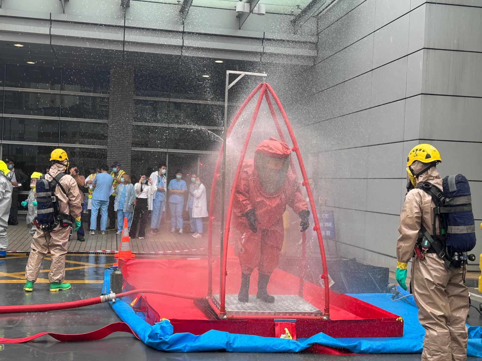 演習期間,警方接報後迅速到場制服疑犯,協助受影響人士疏散到安全地方,並管理現場道路交通,確保緊急救援車輛順利抵達現場。東涌消防局人員及危害物質專隊亦到場進行救援及洗消等工作。警方、消防處及北大嶼山醫院人員亦在現場設立指揮站統籌,以便有效執行各項任務及分流受影響的傷者。