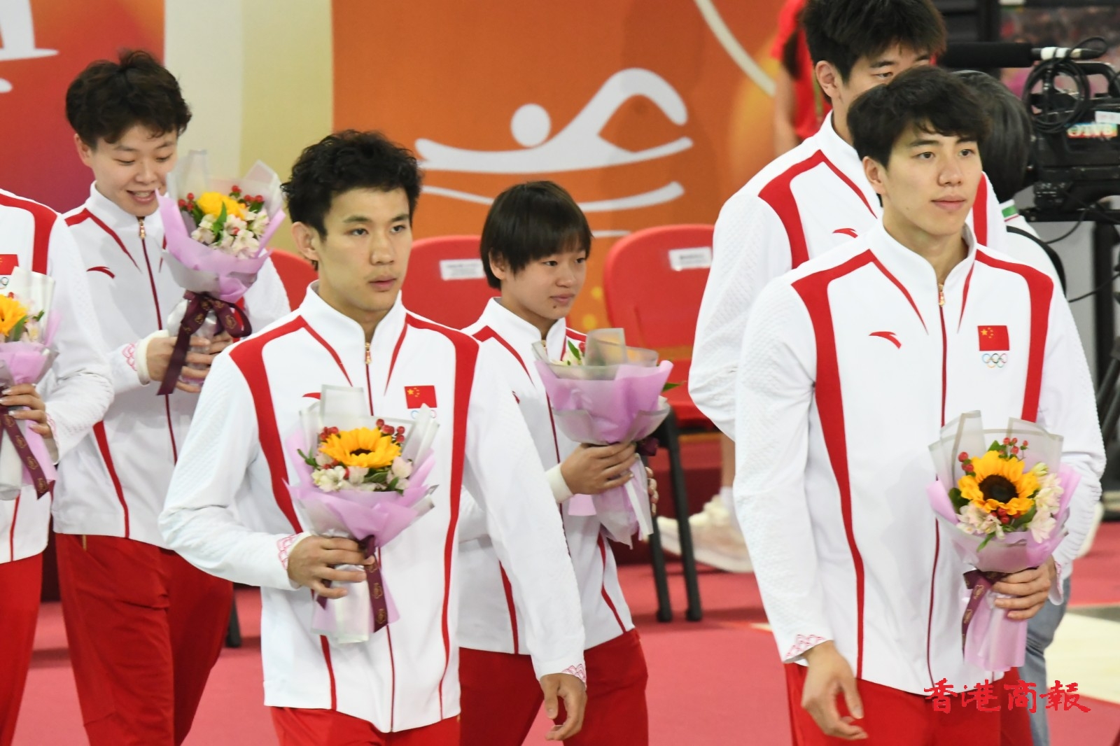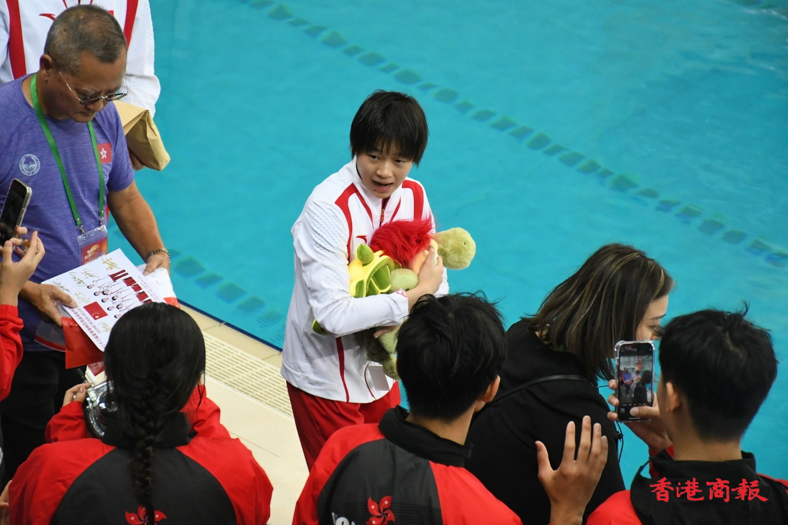 徐嘉余則表示,自己是第一次來港,笑言來香港門檻高,需要拿到獎牌才能來。指感受到香港每一位朋友的熱情及關心,在酒店品嚐了香港美食。
