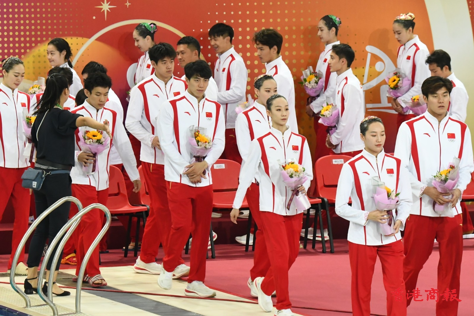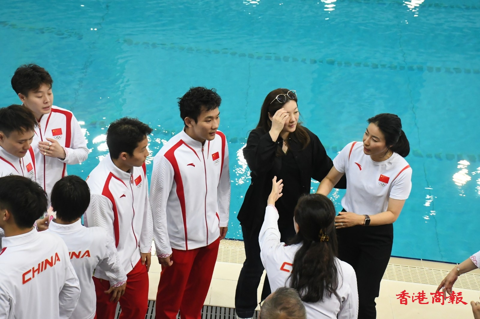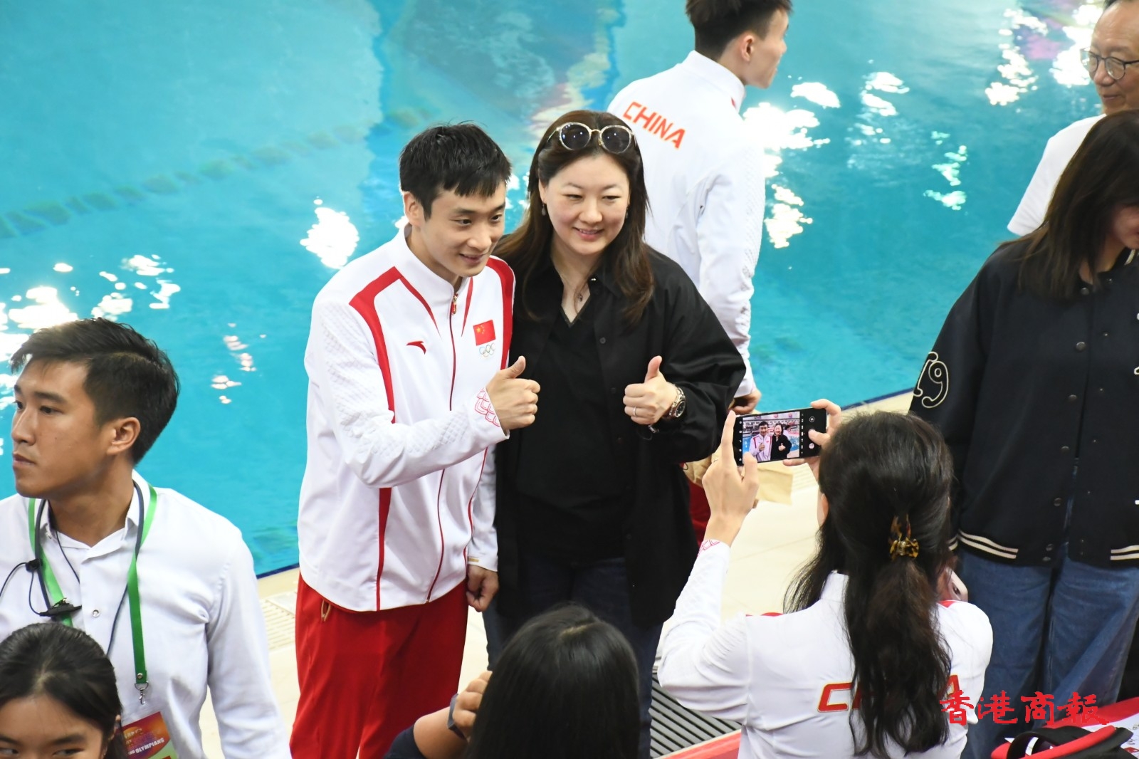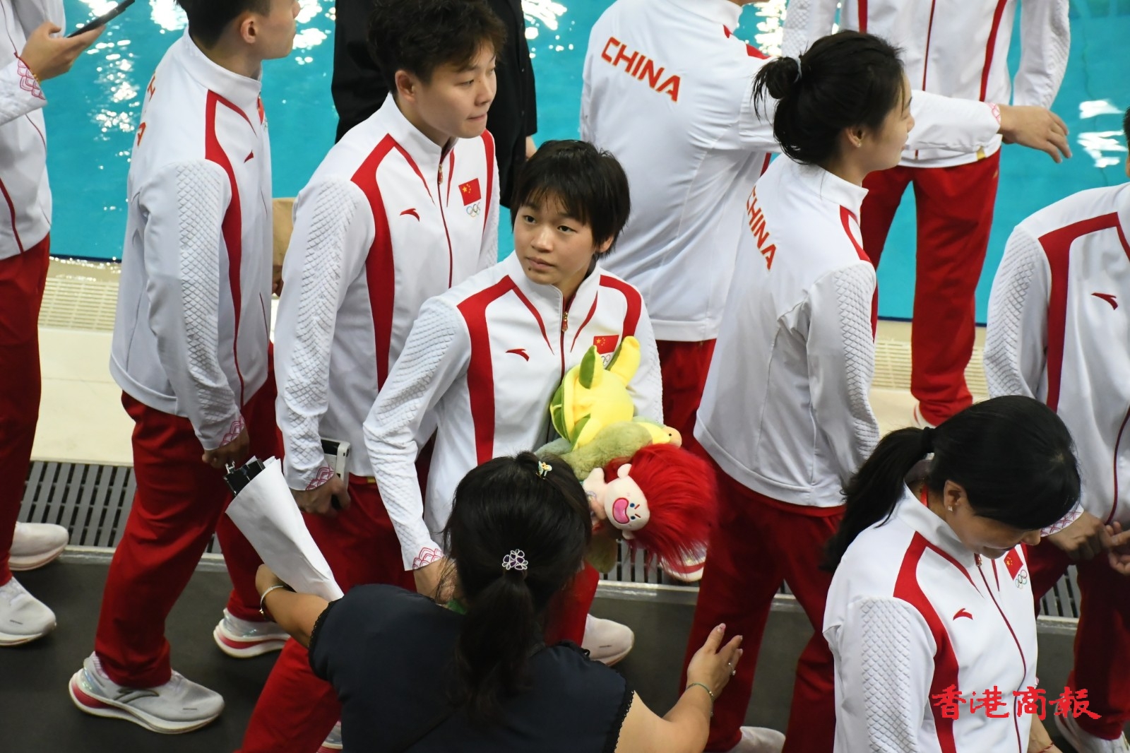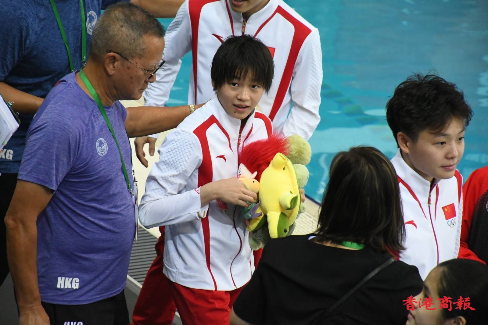 表演結束後,跳水運動員們與香港青少年合影,多名青少年圍着全紅嬋要簽名,全紅嬋又收獲了多隻由粉絲贈送的綠色烏龜公仔;另外,郭晶晶和伏明霞與跳水隊交流合影。