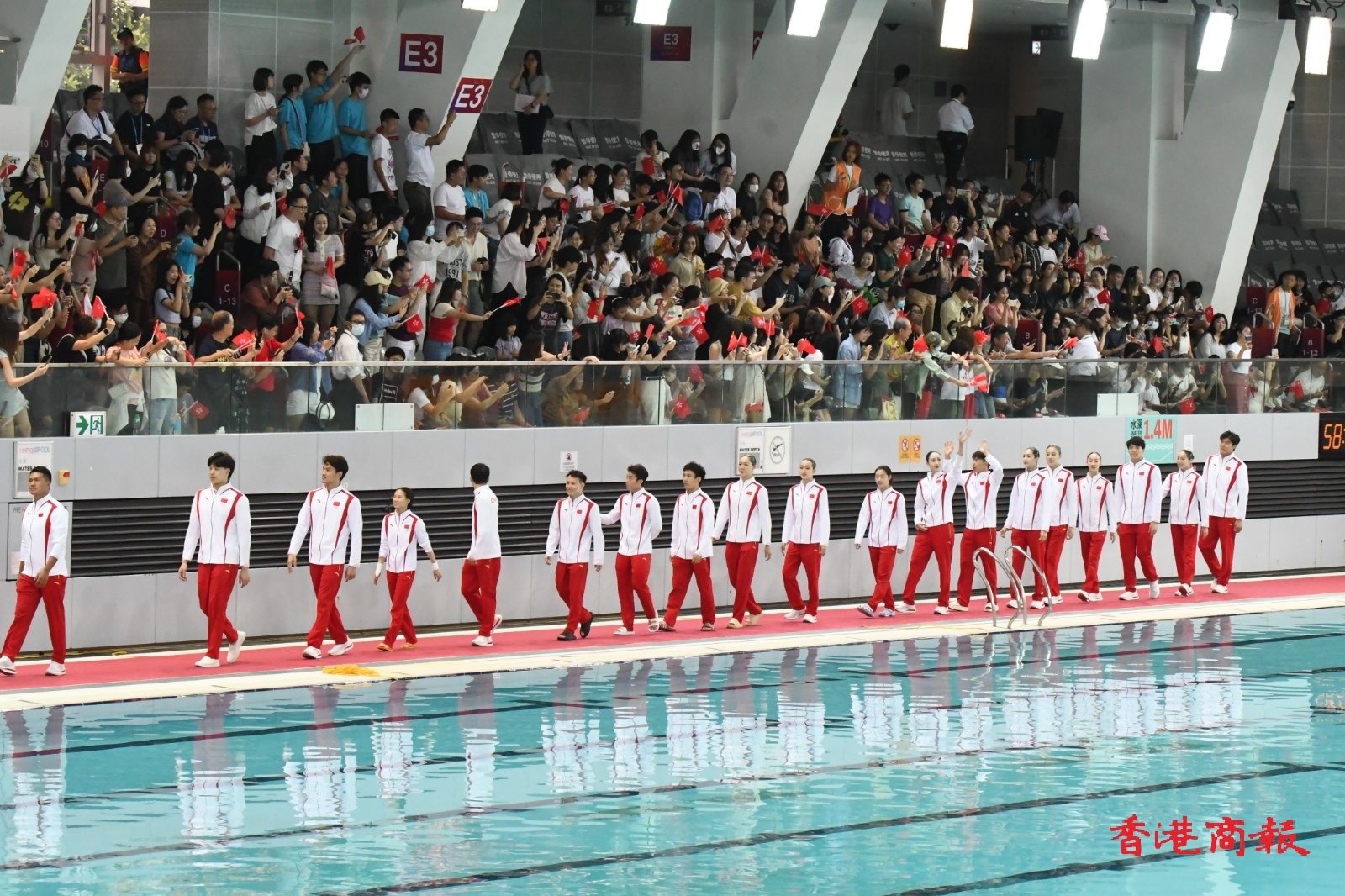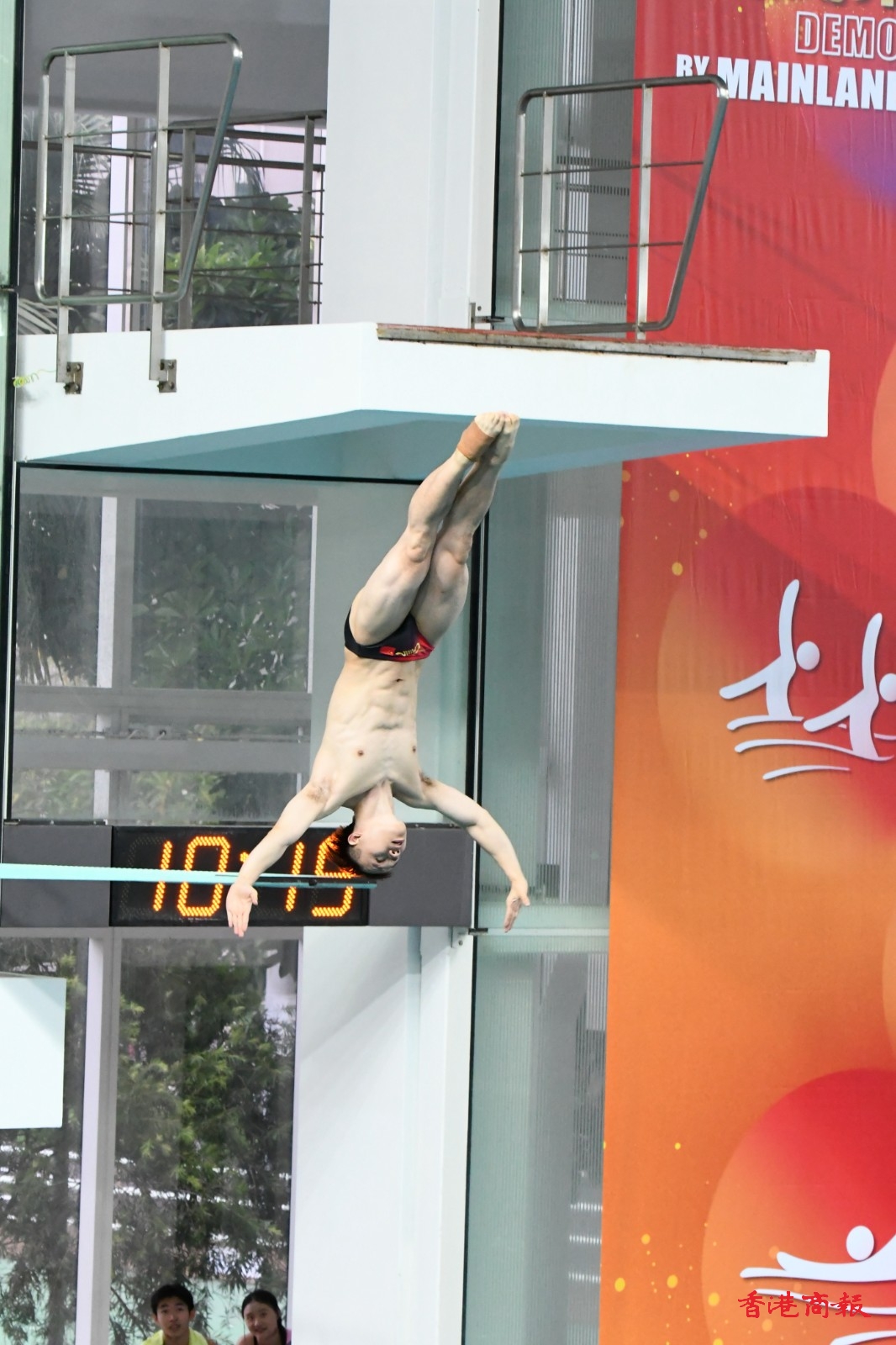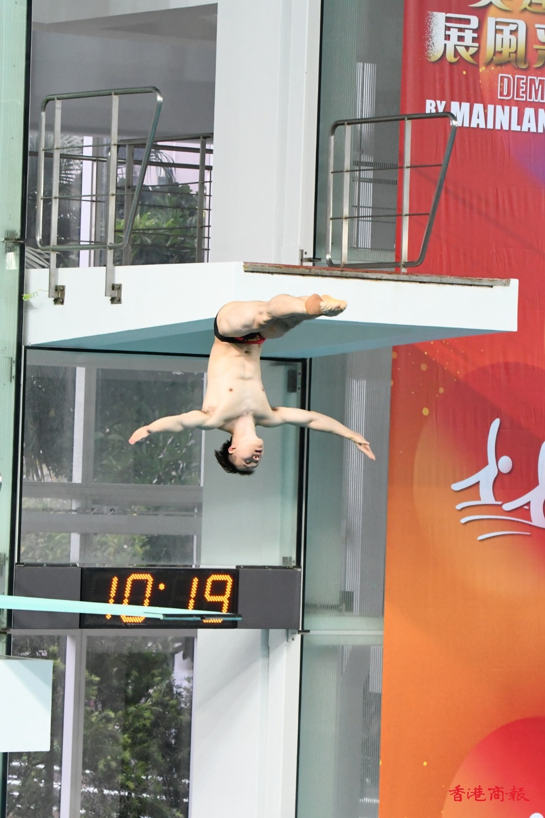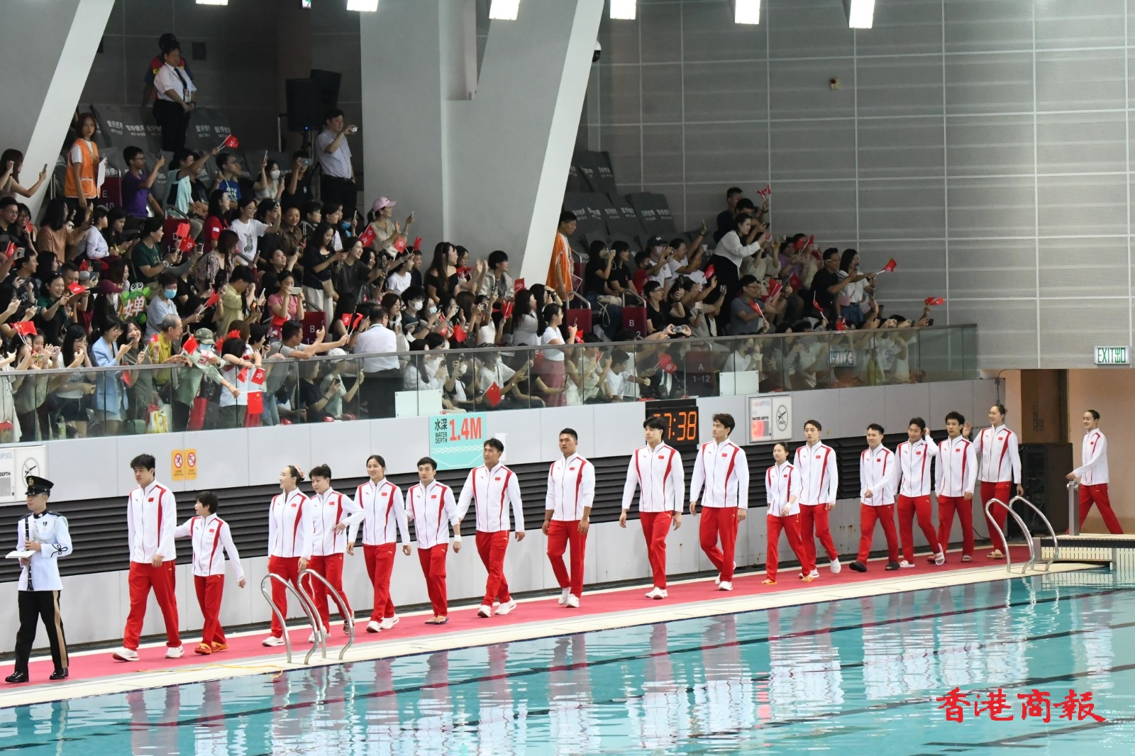 其後,一眾跳水運動員示範池邊跳水,國家隊及港隊運動員共同進行入水表演,昌雅妮、陳藝文表演了彈板跳水,全紅嬋與陳芋汐在10米高台進行跳水表演,為觀眾展示了「水花消失術」。跳水夢之隊最後在10米高台以下餃子式逐一入水結束表演。