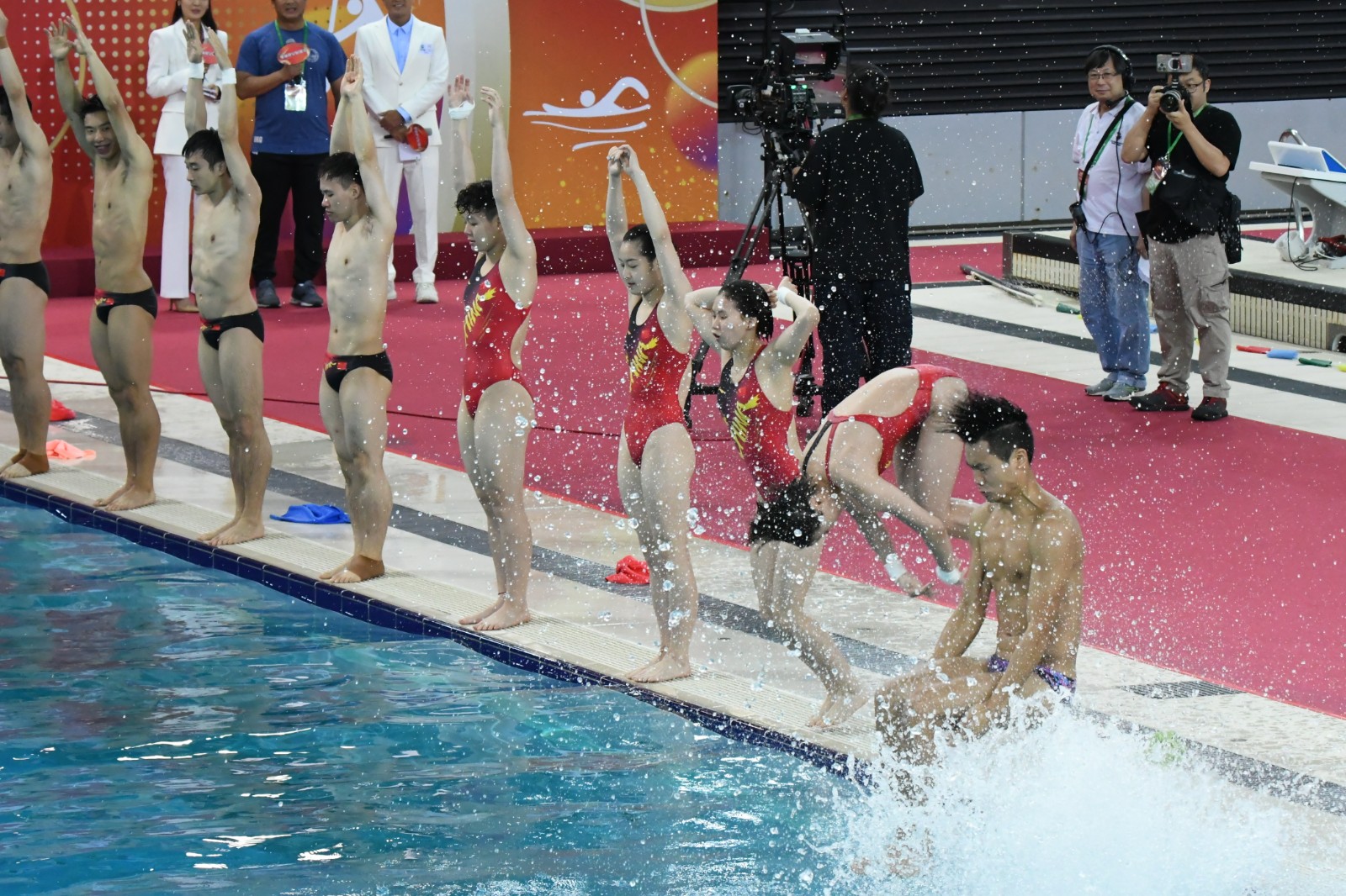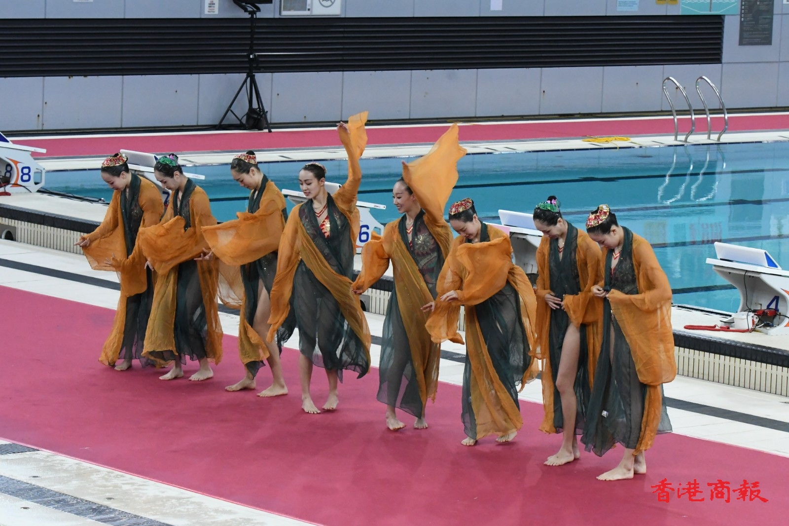 花樣游泳運動員王柳懿和王芊懿率先進行示範,多名花樣游泳運動員們亦進行水上表演。