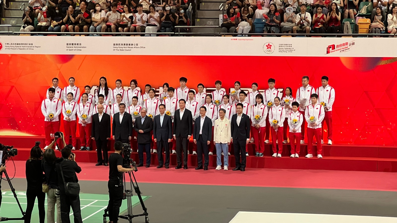 今日(31日)上午9時30分至11時30分,內地奧運健兒在伊利莎伯體育館,進行羽毛球、體操及乒乓球運動項目示範,包括馬龍、樊振東、陳夢、王楚欽、王曼昱、盛李豪、黃雨婷、鄭思維、黃雅瓊、陳清晨、賈一凡、劉洋及鄒敬園等33名奧運健兒,進行示範。