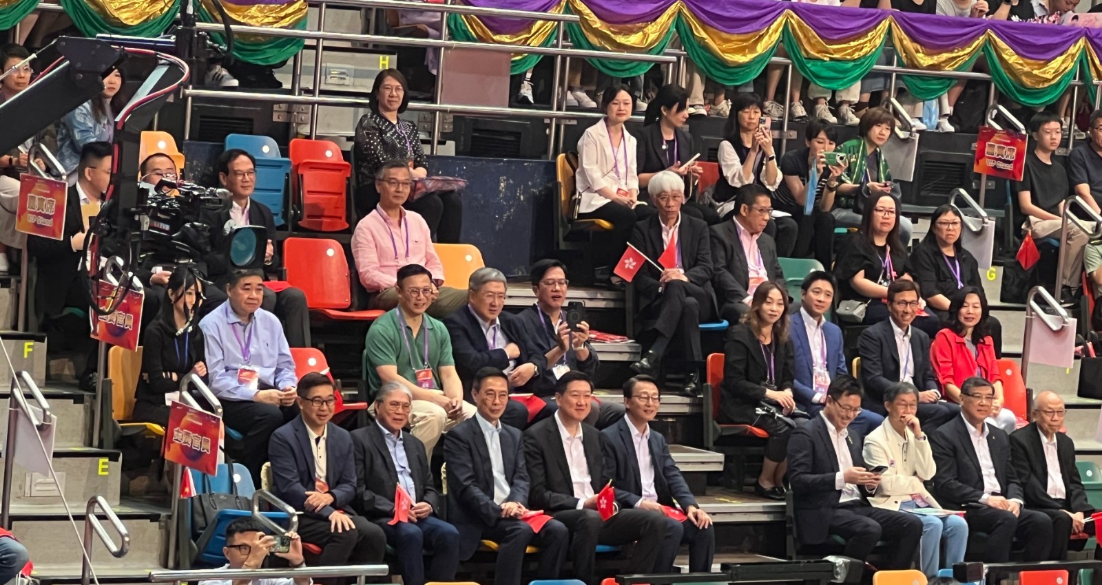 羽毛球項目,混雙冠軍鄭思維、黃雅瓊,對女雙冠軍陳清晨、賈一凡,彼此示範打「高波」。陳清晨及賈一凡又與港隊女雙組合楊雅婷及楊霈霖,交換拍檔,切磋球技。混雙運動員鄭思維、黃雅瓊與本港青年運動員交流,鄭思維展示招牌扣殺,引起全場觀眾歡呼及掌聲。
