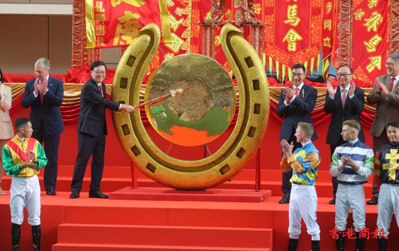 2024/25年度新馬季今早(8日)在沙田馬場開鑼,行政長官李家超主持開鑼儀式,他敲響銅鑼,為醒獅點睛,並為行政長官盃獲勝者頒獎。