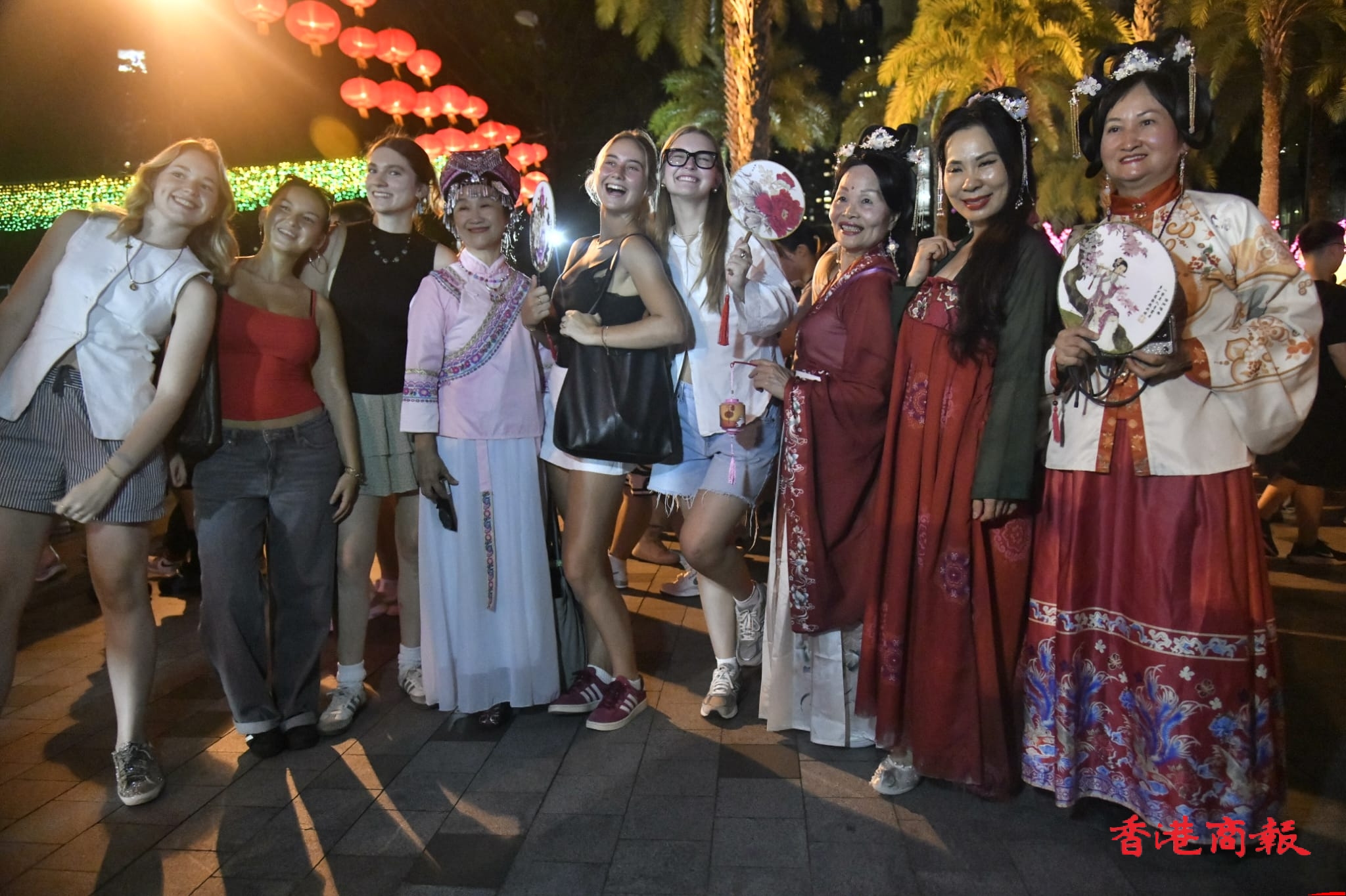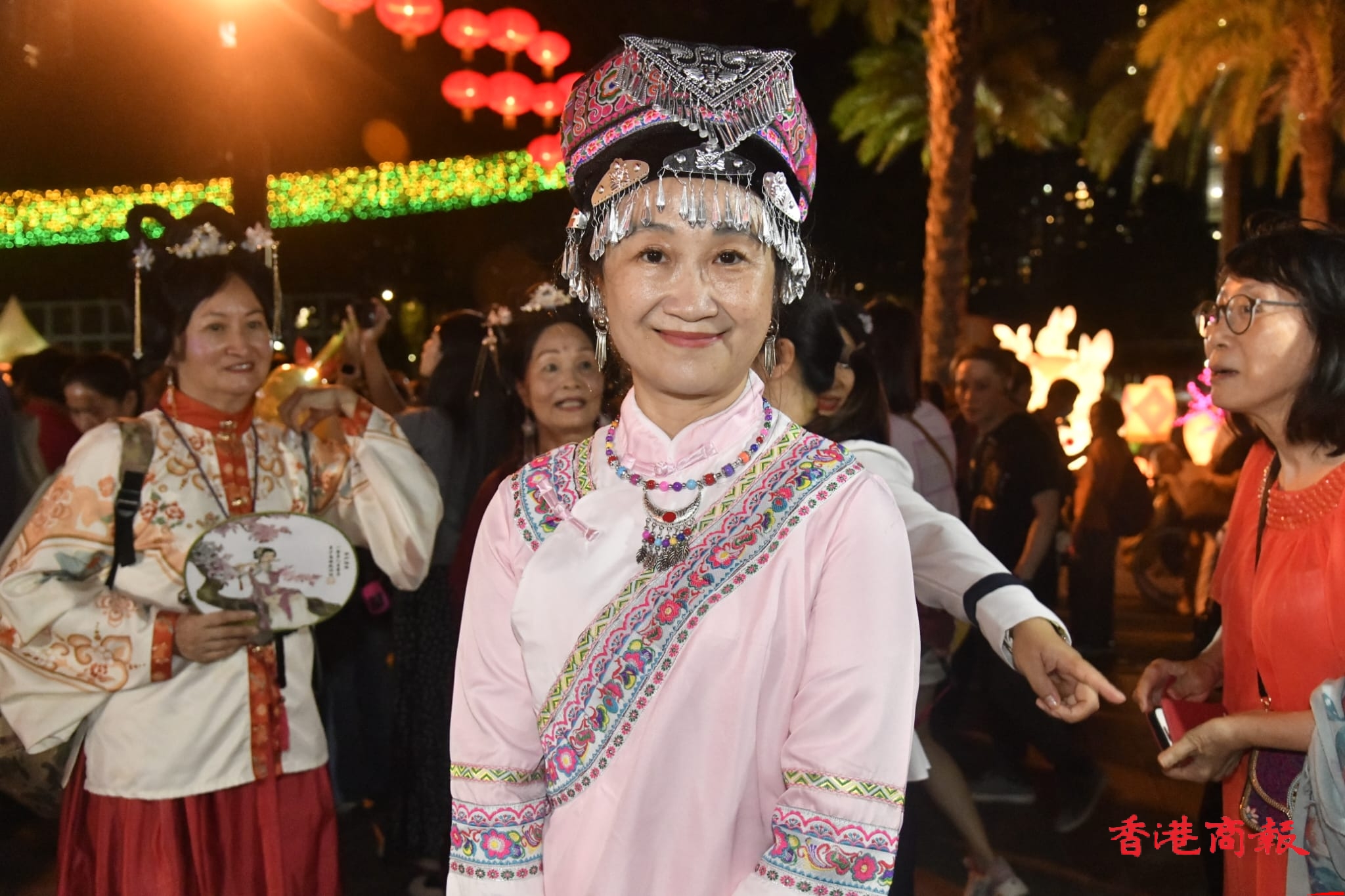 藍小姐形容節日氣氛濃厚,她指中秋節是中國傳統文化,自己特意穿上苗族服裝到維園參加綵燈會,很多人邀請自己合照。她還計劃明年邀請朋友一同前來。