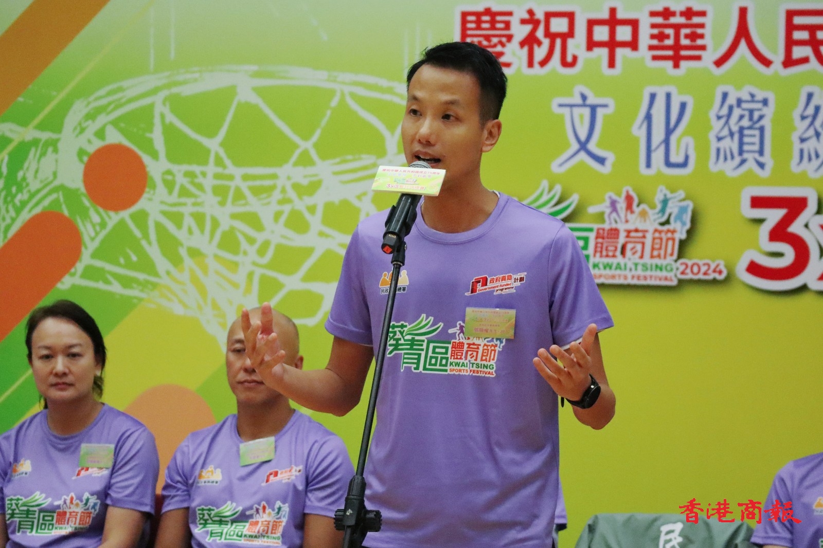 葵青民政事務專員鄧顯權稱,葵青體育節只有一個理論,就是希望每個人都可以參與,無論是什麼年齡層、是不是少數族裔,甚至是傷健人士皆可一起參與。下年將是全國運動會,香港將承辦其中8個項目,包括男子22歲以下組籃球賽,期望日後能於球場上以觀眾身份再次見到各位。葵青體育節也是國慶75周年活動,祝願國富民強、葵青區政通人和。