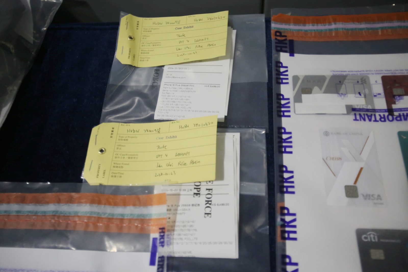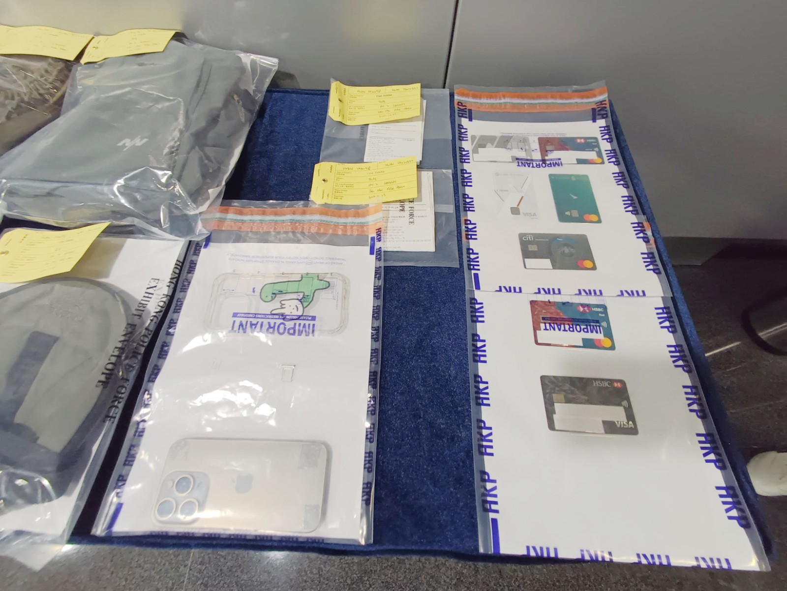 探員其後將疑犯押返住所,檢獲他犯案時所穿的衣物、被盜的信用卡和單據等證物。疑犯現正被扣留調查。(記者 區天海)
