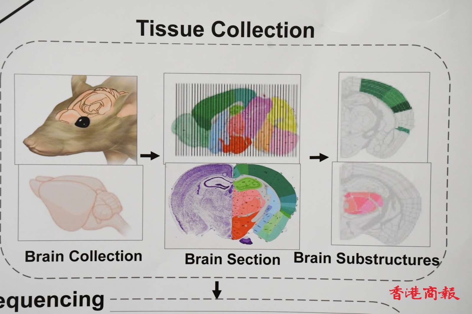 圖片講解了使用老鼠腦研究其基因轉錄組流程。馮瀚文攝