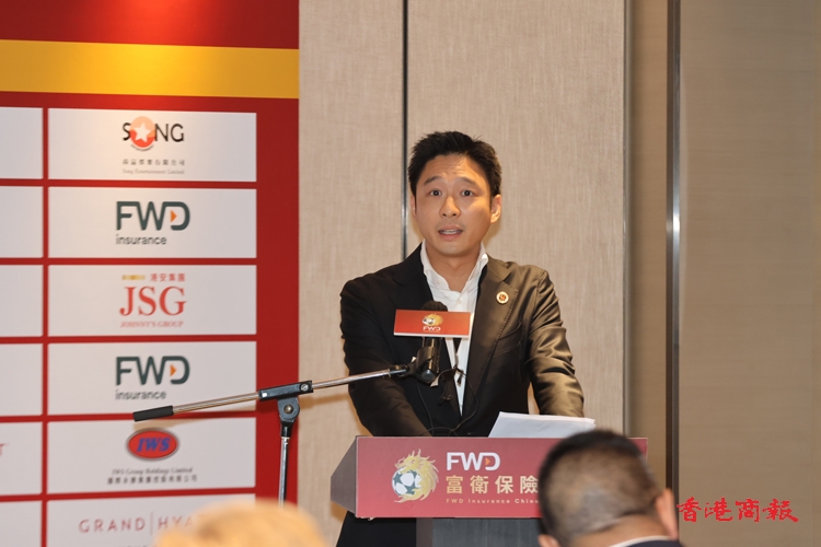 中國香港足球總會主席霍啟山上台致辭。