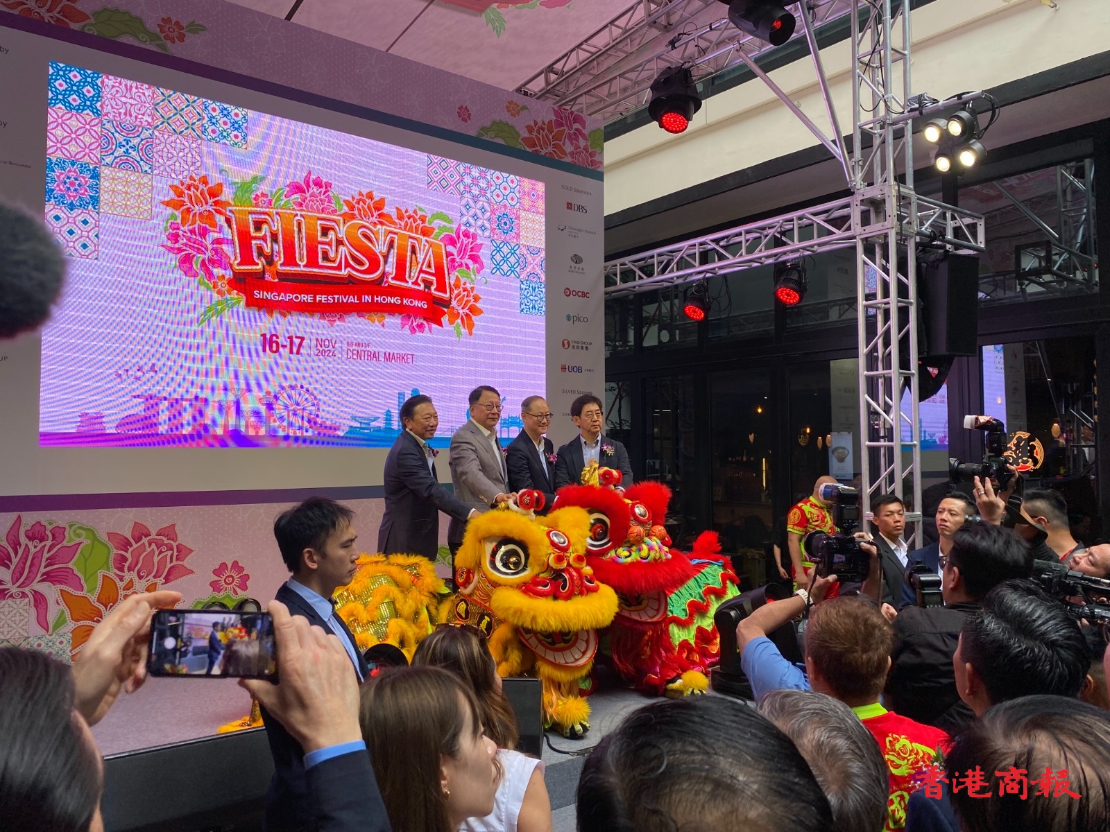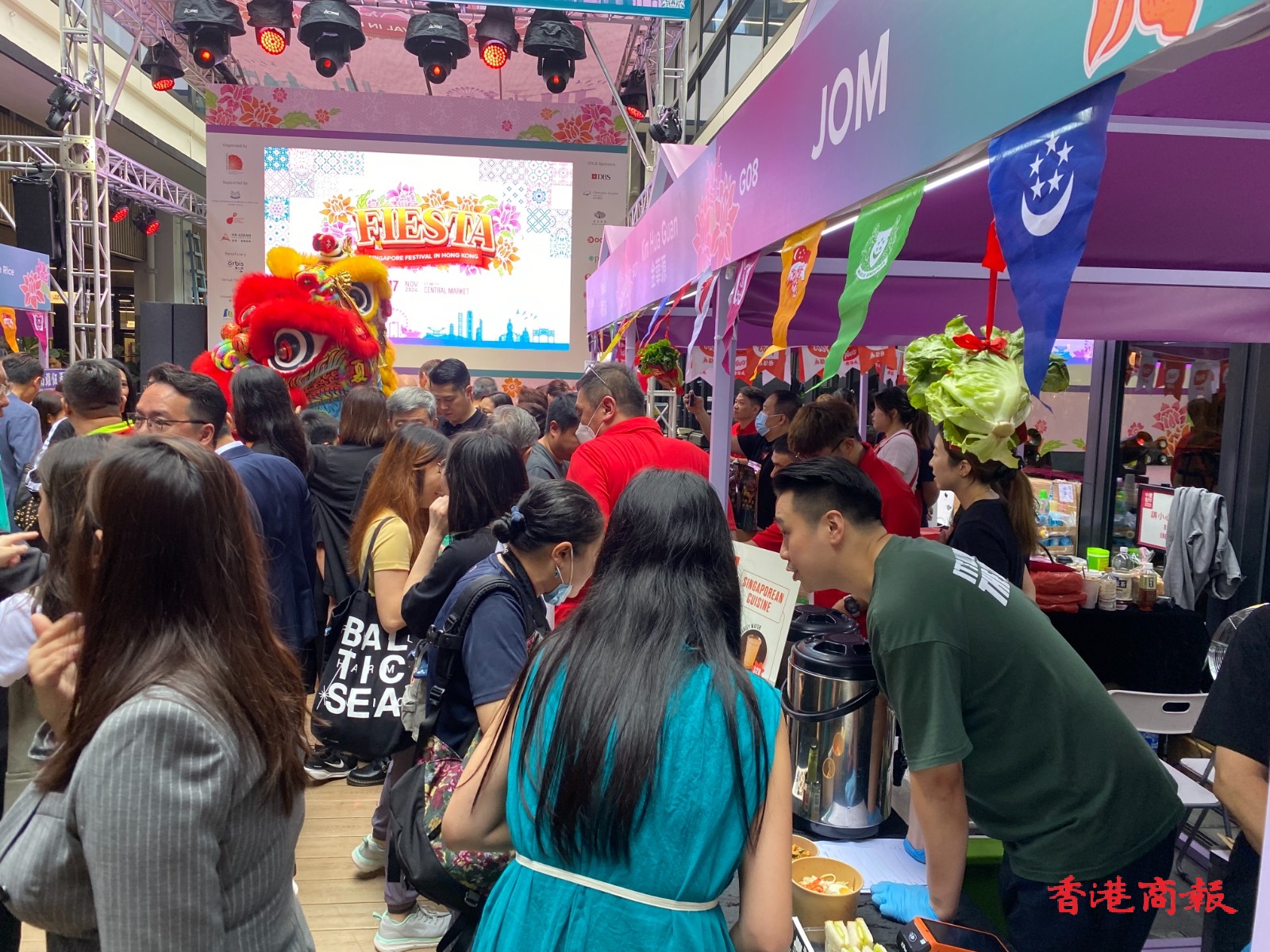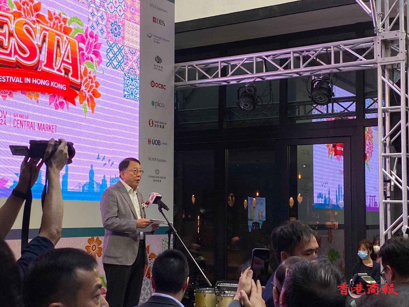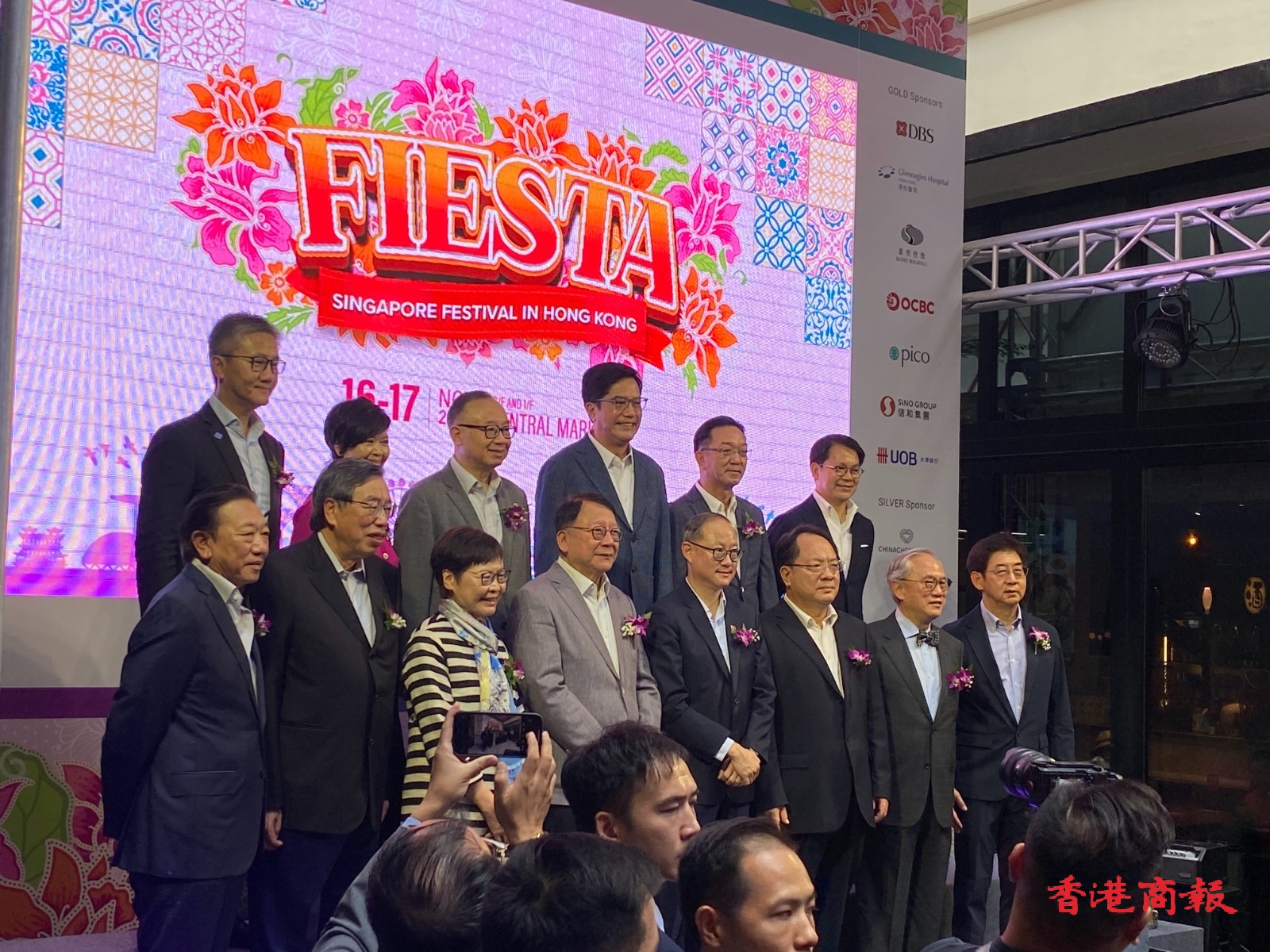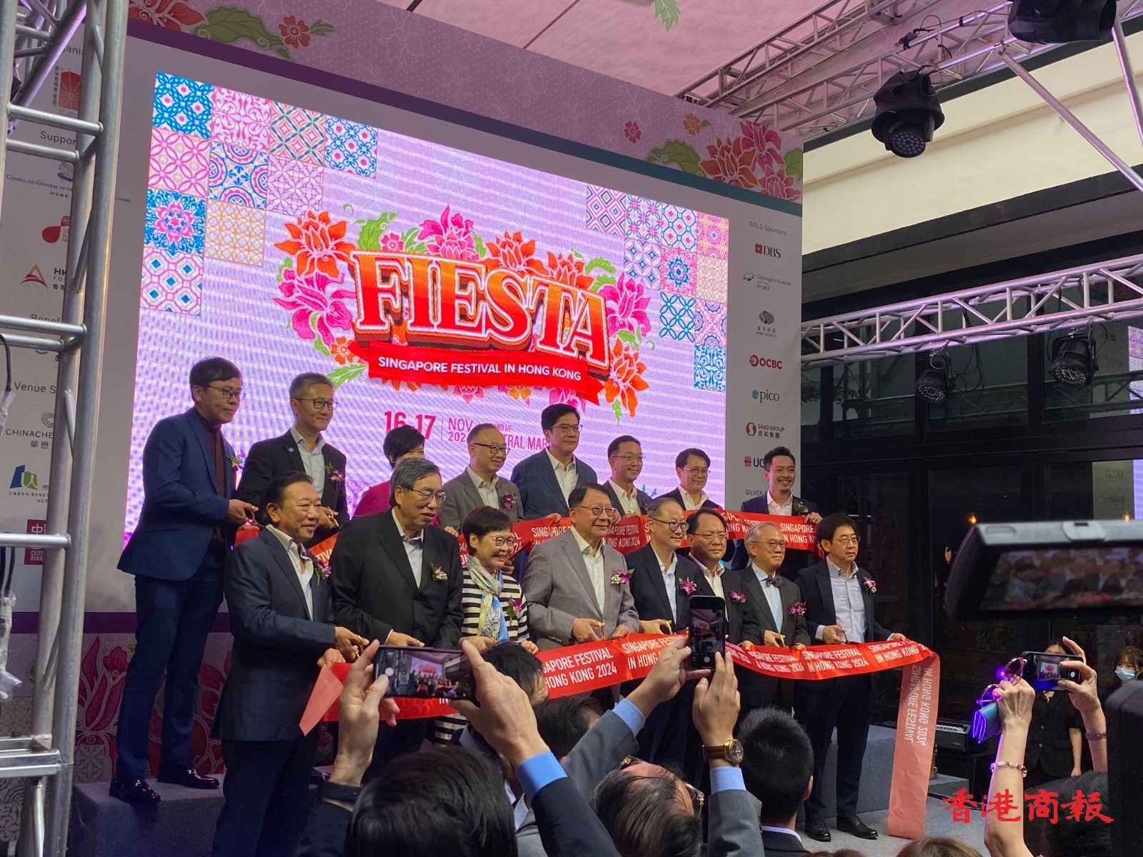 由新加坡商會(香港)舉辦的年度盛事「新加坡節」,今日(16日)起一連兩天在中環街市舉行,十多個檔攤售賣著名新加坡美食。現場有歌舞表演、攤位遊戲,吸引大批市民前來參與。政務司司長陳國基,前特首曾蔭權及林鄭月娥,立法會主席梁君彥,財政司副司長黃偉綸,房屋局局長何永賢,警務處處長蕭澤頤,外交部駐港公署副特派員潘雲東,行政會議召集人葉劉淑儀,以及行政會議成員廖長江、劉業強、陳清霞、陳克勤、鄭慕智,立法會議員陳勇、林琳、容海恩等眾多政商界名人出席了今日的開幕禮。(撰文/攝影:李銘欣)